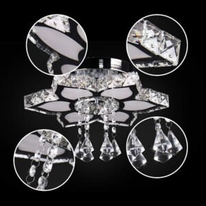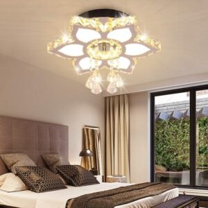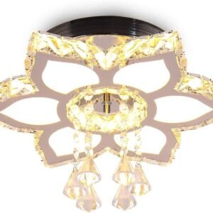 Lámpara de techo de cristal: este candelabro de cristal de 40,9 cm cuenta con un impresionante diseño en forma de flor con cristales acrílicos transparentes que añaden un toque de elegancia a cualquier habitación. Candelabros de sala de estar: Voltaje: 85-265V. Color de la luz: 2700 K (blanco cálido). Bajo consumo de energía, la luz suave, cómoda y natural Lámpara de araña LED: Alimentada por una fuente de luz LED de 42 vatios, esta lámpara de araña de montaje al ras proporciona una iluminación brillante y eficiente mientras ahorra en costos de energía. Voltaje: 85-265V. Candelabros de Dormitorio Fácil Instalación: Con un diseño simple de montaje en el techo, esta iluminación de candelabro puede instalarse fácilmente en la ubicación deseada, añadiendo un toque lujoso a tu espacio de vida. Aplicaciones versátiles de la lámpara de araña de cristal: Adecuada para uso en salas de estar, áreas de comedor, dormitorios, o cualquier espacio donde desees crear un ambiente cálido y acogedor.