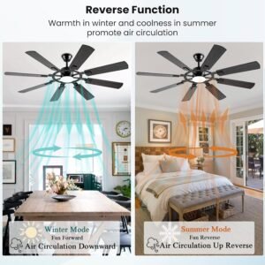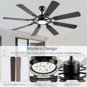 FUMLTP Ventiladores de techo de 62 pulgadas con luces, venti