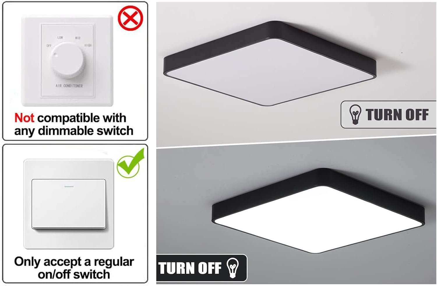 Tema: Luces de techo Kithcne, Lámpara de techo LED cuadrada, Lámpara de techo LED negra, Lámpara de techo empotrada, Lámpara de techo para dormitorio, Lámpara de techo para pasillo