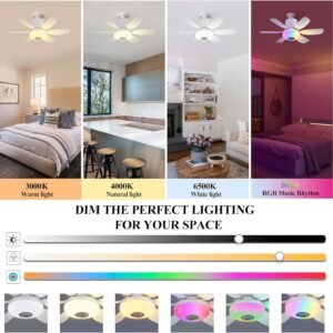 Detalles: Altavoz Bluetooth, Luz LED regulable de 3000K-6500K, RGB, Ventilador de enchufe