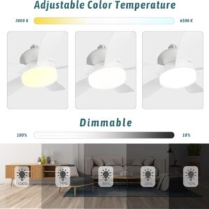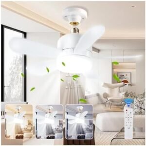 Ventilador de techo con luz y control remoto: Este ventilador de techo con luz cuenta con un diseño único que combina un ventilador y una luz para proporcionar a su habitación una luz suave y un ambiente acogedor de vida. Diseñado para estándares de alta tecnología, este ventilador ligero garantiza la circulación de aire en tu habitación. Función de control remoto: este ventilador de techo con luz se puede controlar fácilmente con un control remoto. Puedes controlar fácilmente el brillo, la temperatura del color, la velocidad del ventilador (tres opciones), la función de temporizador y el modo de suspensión. El ventilador y la luz se pueden encender por separado para crear un ambiente tranquilo y tranquilo y mejorar la calidad del sueño. Fuente de luz LED: Los ventiladores de techo de tornillo con luces utilizan una fuente de luz LED avanzada que es a la vez eficiente energéticamente y respetuosa con el medio ambiente. Proporciona una fuente de luz suave y sin reflejos que protege tus ojos. Ilumina cada rincón de tu dormitorio con luz natural, mejorando la calidad del sueño y creando un ambiente acogedor. MOTOR MUTE: El ventilador de techo pequeño E27/E26 con control remoto tiene un motor silencioso que garantiza un flujo de aire suave y fluido. Funcionamiento silencioso garantizado. Tamaño: 40,6 cm de diámetro. Este ventilador de techo con luz es perfecto para dormitorios, salas de estar, comedores, sótanos y habitaciones infantiles. Smart Memory ON/OFF: Disfruta de la comodidad de una función de memoria inteligente que recuerda tus últimos ajustes. Cuando enciendas el ventilador, se reanudará a la velocidad e intensidad de la luz anteriores, eliminando la necesidad de reajustar cada vez. Colocación versátil: perfecto para dormitorios, cocinas, salas de estar, balcones, gimnasios, sótanos y apartamentos, este ventilador es una adición versátil a cualquier espacio. Su elegante diseño y funcionalidad lo convierten en una excelente opción para varios entornos. NO Extender: Este modelo de luces de ventiladores de techo no incluye extensor E26
