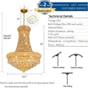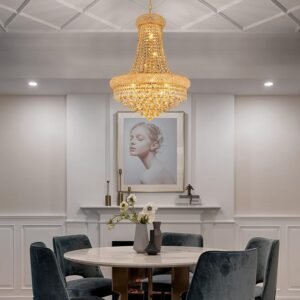 Diseño de estilo imperio: Esta lámpara de araña de cristal para comedor está hecha de cristales K9, cuando enciendes la luz, es como abrir un viaje romántico francés, la luz refracta una luz de ensueño a través de los cristales, creando un ambiente noble y encantador Tamaño de la lámpara de araña: Esta lámpara de araña de cristal estilo imperio tiene un diámetro de 55,9 cm, toda la luminaria cuelga a una altura máxima de 175,3 cm, un mínimo de 76,2 cm, y pesa 40 libras. Tenemos más colores y tamaños para elegir Altura ajustable: el paquete de candelabros de comedor incluye una cadena de araña de 99,1 cm, puedes ajustar la cadena de acuerdo a la altura que necesites instalar, es muy conveniente y se adapta perfectamente a tu techo Regulable: estos candelabros de cristal de lujo requieren 12 bombillas de base E12 (40 vatios de potencia máxima por bombilla), si utilizas bombillas regulables y reguladores, estos candelabros de entrada son regulables. (Todas las bombillas y reguladores de intensidad no están incluidos) Escena aplicable: Esta lámpara de araña de cristal dorado combina lujo y estilo Imperio francés, el área de uso recomendada es de 15-25 , se puede utilizar como una lámpara de comedor sobre la mesa, y también se puede utilizar en la sala de estar; escalera; vestíbulo; pasillo; bar, etc Instalación: este paquete de lámparas de araña para sala de estar viene con instrucciones de instalación detalladas, solo tienes que seguir las instrucciones de instalación en el paquete para montar y colgar el cristal, el proceso de instalación es muy fácil de entender Atención al cliente: Proporcionamos a todos los clientes un servicio satisfactorio, si tienes alguna incomprensión sobre el pedido o el producto, o la instalación de lámparas de cristal modernas y otros problemas, te proporcionaremos soluciones satisfactorias en 24 horas