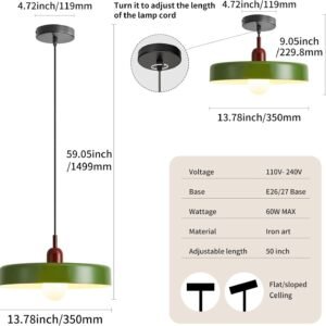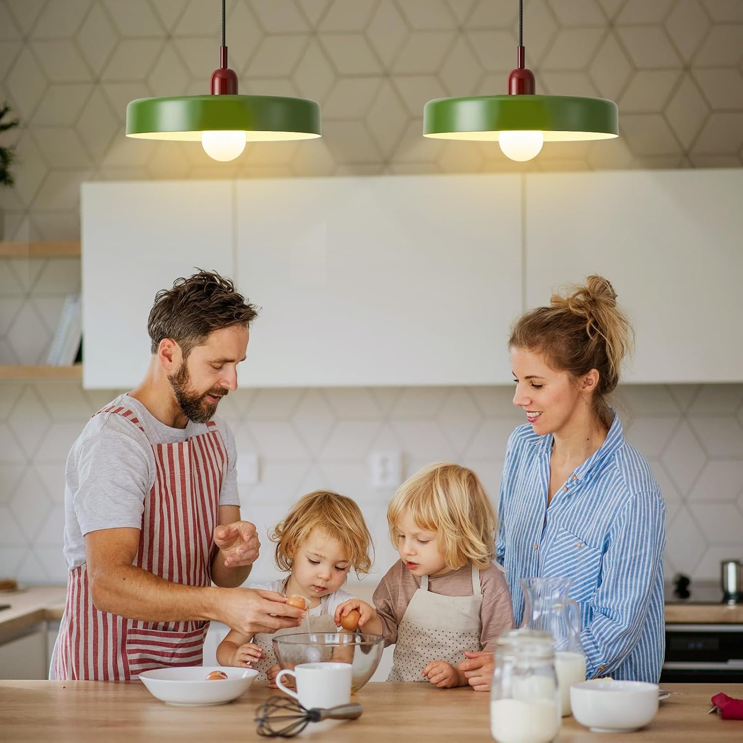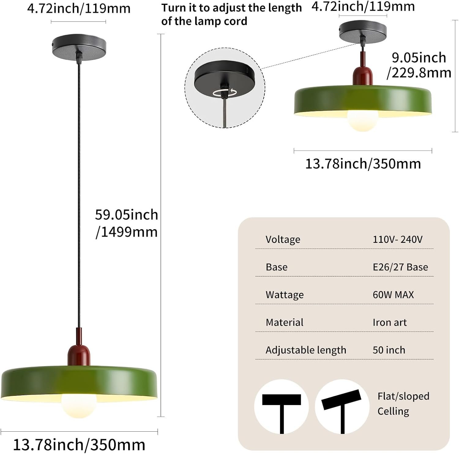 Estilo moderno de mediados de siglo : la lámpara colgante vintage está hecha de metal resistente. El elegante diseño de color de contraste hace que la lámpara colgante sea simple y retro. Una mezcla perfecta de mediados de siglo y modernidad. Amplia aplicación : la lámpara colgante es perfecta para cualquier condición, incluyendo isla de cocina, comedor, sala de estar, pasillo, dormitorio, baño, casa de campo, pasillo, entrada, vestíbulo, oficina, restaurantes, hoteles, tiendas, cafeterías y otros espacios interiores que te gusten. Una buena adición a tu hogar. Fácil de instalar : la lámpara colgante se puede instalar fácilmente. Todos los accesorios necesarios e instrucciones de instalación claras (idioma español no garantizado) están incluidos en el paquete. Especificaciones de la bombilla: nuestras luces colgantes son compatibles con bombillas E26 (bombillas no incluidas). Puedes elegir diferentes estilos de bombillas y temperaturas de color para crear ambientes diferentes y únicos para tu hogar. Post-Servicio : nuestro objetivo son productos de alta calidad y un servicio perfecto. Si tienes alguna pregunta sobre tu compra, ponte en contacto con nosotros, haremos todo lo posible para ayudarte a resolverlo.