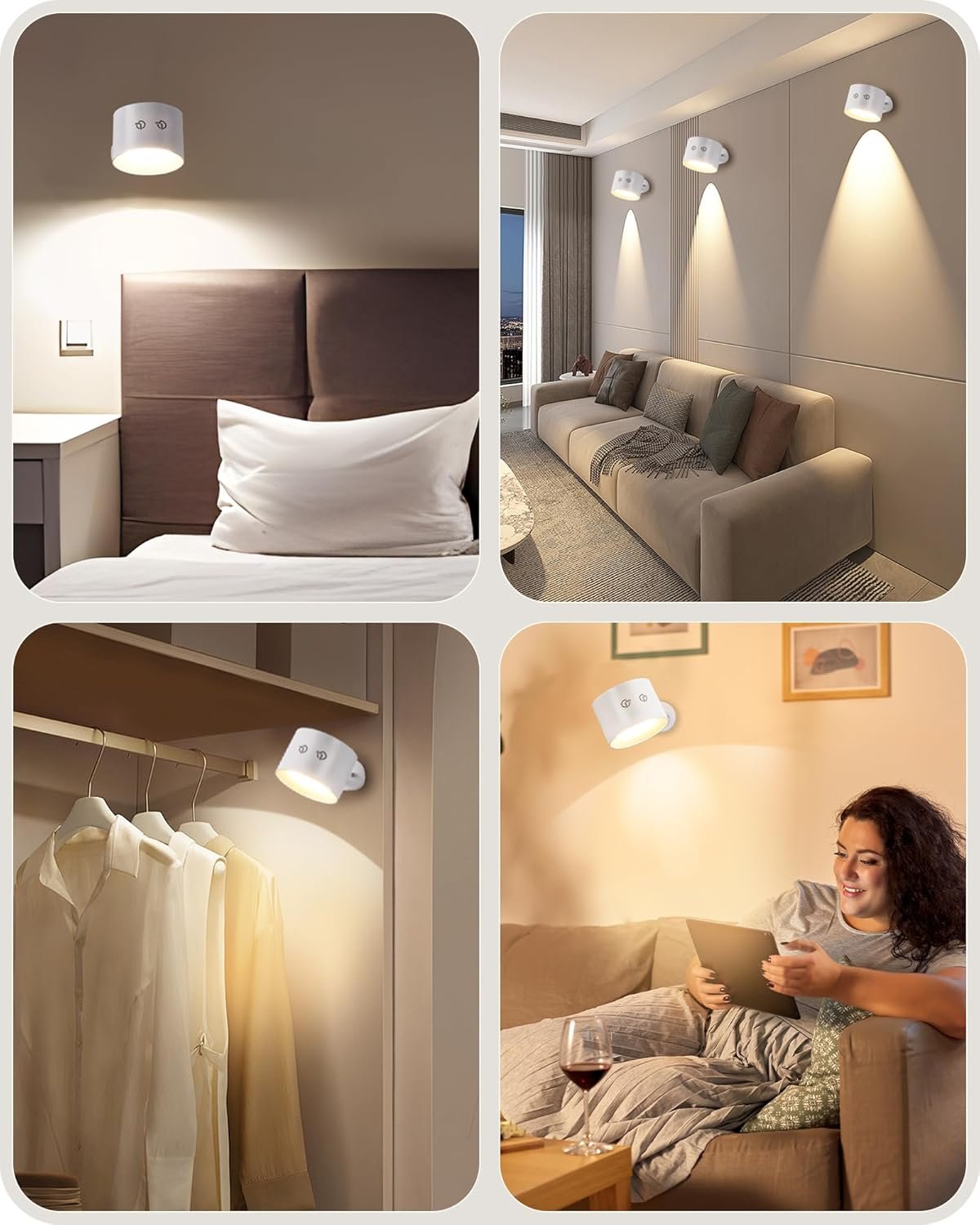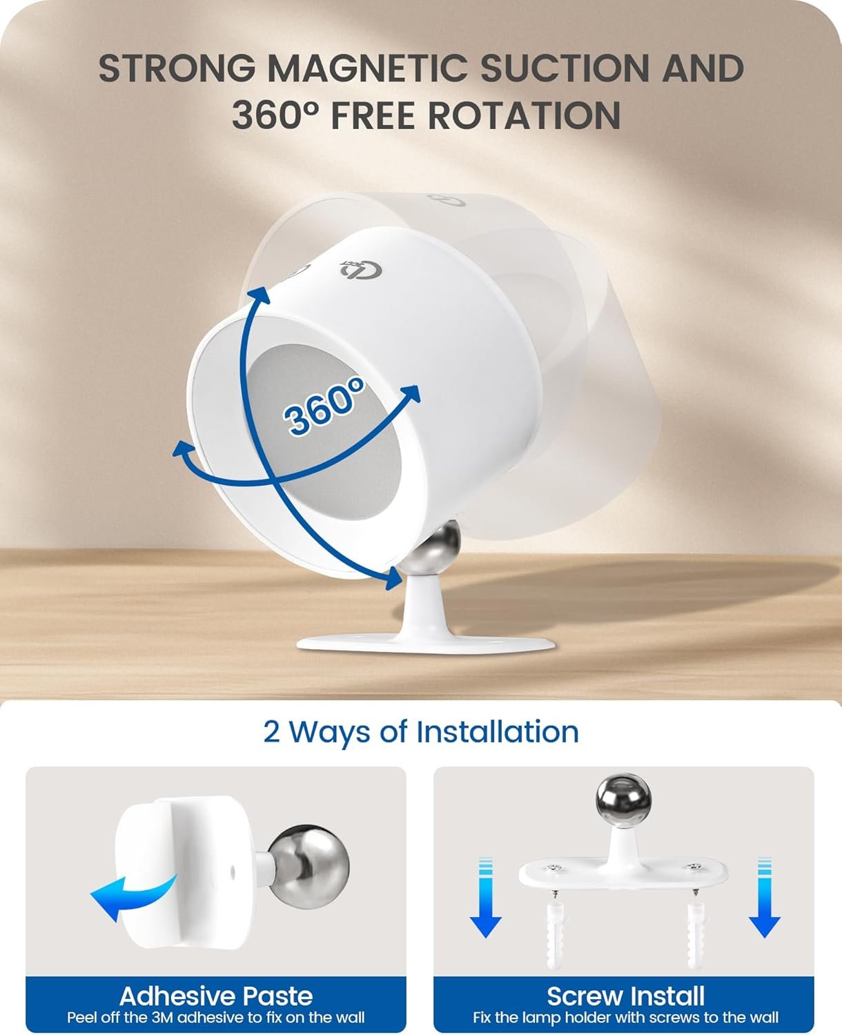 Aplique de pared operado por batería: Este aplique de pared recargable incluye una batería recargable incorporada de 2000 mAh, ofreciendo varias horas de funcionamiento basadas en el brillo después de una carga completa. Los apliques de pared que funcionan con pilas garantizan una iluminación duradera sin el problema de reemplazar la batería con frecuencia Cambiar efectos de iluminación a voluntad: el aplique de pared que funciona con pilas con control remoto está diseñado con 3 colores RGB y 3 temperaturas de color (blanco frío/blanco natural/blanco cálido) para que elijas. Con nivel de brillo ajustable, puedes establecer varios estados de ánimo de acuerdo a tus preferencias, añadiendo sorpresa y romance a tu experiencia de iluminación Práctico método de doble control: el juego de 2 apliques de pared recargables se puede controlar a través de botones, y se incluye un control remoto para operación remota. El temporizador se puede ajustar a 1 o 3 horas, lo que te permite utilizar la luz como luz nocturna y un compañero de sueño ideal para ti Fácil de instalar: Esta lámpara de pared que funciona con pilas con mando a distancia emplea tecnología magnética. El cuerpo y la base de la lámpara se mantienen unidos por una bola de hierro magnética, por lo que el cuerpo de la lámpara puede girar 360°. Puedes ajustar la dirección de las fuentes de luz como desees y quitar fácilmente el cabezal de la lámpara Amplia aplicación: como una solución de iluminación versátil, estas luces inalámbricas de montaje en pared son adecuadas para varios entornos, incluidos armarios, paredes de TV, mesillas de noche, armarios, escaleras, dormitorios y pasillos. Se puede desmontar para su uso como linterna o luz de emergencia cuando sea necesario gracias a su función de succión magnética