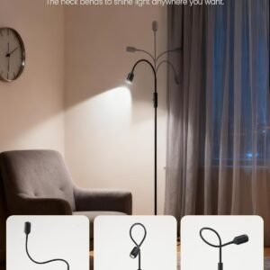 Ajustes de haz adaptables: Tire del cabezal de la lámpara para crear un haz enfocado para tareas detalladas como lectura, escritura o manualidades. Empuja más cerca para un brillo medio o ancho, más suave, adecuado para leer relajadamente o disfrutar de un café. Esta lámpara de pie se adapta a tus diversas necesidades Base resistente y cuello de cisne flexible: una base pesada de 4.6 libras que minimiza los riesgos de vuelco, lo que hace que esta lámpara de pie sea segura para hogares con niños y mascotas. El cuello de cisne flexible de 360° te permite dirigir la luz exactamente donde la necesites, asegurando una iluminación perfecta desde varios ángulos Luz fija óptima de 5000 K: esta lámpara LED de 6 W emite una luz blanca fría constante de 5000 K, perfectamente adecuada para las actividades diarias. Esta luz brillante y clara mejora la visibilidad y la concentración, proporcionando una solución de iluminación óptima para el trabajo, pasatiempos y lectura Diseño elegante que ahorra espacio: esta lámpara de pie elegante y alta se adapta perfectamente a espacios reducidos, por lo que es ideal para apartamentos. Colócalo recto o en un elegante arco para añadir un toque de estilo artístico a tu sala de estar, dormitorio u oficina Montaje rápido: comienza a disfrutar de tu nueva lámpara en minutos. Hemos simplificado la configuración con un proceso de montaje sencillo. Todo lo que necesitas viene en la caja, lo que te permite prepararlo con un mínimo esfuerzo y no requiere herramientas adicionales