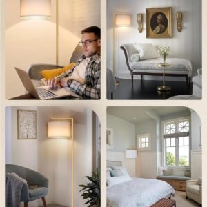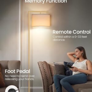 Elegante y con Estilo: Diseño simple y moderno, esta lámpara de pie que ahorra espacio se integra sin esfuerzo en múltiples estilos de interior, incluyendo minimalismo moderno, encanto nórdico e industrial vintage, añadiendo un toque moderno a tu habitación y espacio Una bombilla regulable incluida: la lámpara de piso viene con una bombilla LED de 10W, que ofrece configuraciones ajustables con 5 temperaturas de color (3000K-6500K) y 5 niveles de brillo (10%-100%), atendiendo a diversas necesidades de iluminación, incluyendo lectura, trabajo y relajación Control remoto e interruptor de pie: Esta lámpara de pie alta tiene un pedal para un fácil control de la luz sin agacharse, y un control remoto que funciona hasta 32 pies, permitiéndote cambiar entre modos de iluminación como trabajo, cuidado del bebé, lectura, luz nocturna y temporizador. El mando a distancia se puede pegar en el poste de metal cuando no esté en uso Pantalla ajustable: la pantalla de la lámpara de pie se puede girar horizontal o verticalmente, lo que permite un ajuste flexible del ángulo de iluminación en múltiples direcciones, lo que la hace perfecta tanto para iluminación precisa como para crear un ambiente cálido para su habitación Estable y fácil de montar: fabricada con un poste de metal resistente y base de metal, la lámpara de pie es estable y duradera. El montaje de esta lámpara de pie de arco es fácil, todo lo que necesitas hacer es atornillar todos los postes juntos y luego atornillarlos en la base, se completa rápidamente en minutos