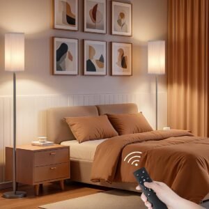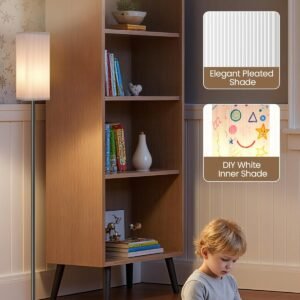 Control remoto magnético e interruptor de pie: disfrute de la comodidad de control dual. El control remoto magnético se fija de forma segura al poste para evitar el extraviamiento, mientras que el interruptor de pie permite un fácil control de encendido/apagado sin agacharse Atenuación suave y ajuste de color: Ajusta el brillo sin problemas del 10% al 100% y establece el ambiente con temperaturas de color que van desde 3000 K (blanco cálido) hasta 6500 K (luz diurna). El temporizador de apagado automático de 1 hora es perfecto para leer a la hora de acostarse Lámpara de pie de esquina moderna: Presenta un diseño que ahorra espacio, ideal para esquinas. Toda la lámpara está certificada por ETL, cumpliendo con rigurosos estándares de seguridad para tu tranquilidad. Disfruta de la comodidad y la iluminación suave con una configuración sencilla Fácil montaje y ahorro de espacio: la lámpara de esquina está diseñada para un montaje sencillo, lo que permite una configuración rápida. Su perfil elegante y alto es perfecto para caber en esquinas pequeñas, ayudándote a maximizar tu espacio vital de manera eficiente Diseño elegante plisado con pantalla DIY: La lámpara de pie cuenta con una pantalla de doble capa que proyecta una luz hermosa y es fácilmente removible para su limpieza. El forro interior de color blanco puro permite la pintura de bricolaje, lo que te permite crear una lámpara única y personalizada