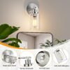 Exquisita artesanía y diseño elegante : el aplique de pared de níquel mejorado está hecho de una lámpara de metal resistente con acabado de níquel cepillado y pantallas de vidrio más gruesas de alta calidad, antioxidantes, a prueba de humedad y anticorrosión, duraderas para ser utilizadas durante muchos años. La hermosa lámpara de pared combina perfectamente con cualquier estilo de la casa, desde moderno hasta rústico, añadiendo un aspecto más exquisito, contemporáneo o vintage a la iluminación de tu hogar. Enchufe de base E26 y atenuable Los apliques de pared son compatibles con bombillas de base media E26 (bombilla NO INCLUIDA), como LED, incandescentes, CFL, RGB, halógenas, etc. (Máx. 60 W por bombilla). Este aplique de pared de 1 luz también puede ser totalmente regulable cuando se utiliza con bombillas regulables e interruptor de atenuación compatible, para ajustar diferentes niveles de brillo según sus necesidades. (Las bombillas E26 y el interruptor de atenuación no están incluidos) Tamaño fantástico Lámpara de pared con la dimensión perfecta de aplique de pared: 26,5 cm x 15,0 cm (largo x alto). Puedes elegir la posición de instalación y la altura de acuerdo a tus necesidades reales, para crear una atmósfera hogareña cálida, adecuada para varias renovaciones de casa. Instalación rápida y fácil Todos los accesorios de montaje necesarios para la instalación vienen con las lámparas de pared. Solo tienes que conectar los cables, luego instalar la pantalla de cristal y la bombilla. La lámpara de montaje en pared se puede montar hacia arriba o hacia abajo según tu referencia. Pero ten cuidado para evitar que se rompa al instalar, ya que la forma de la lámpara está hecha de vidrio. Fabulosa decoración del hogar El aplique de pared para el baño es ideal para la decoración interior del hogar, como una opción perfecta de decoración para ambos lados de un espejo de baño o tocador, mesa de tocador, mesa de vestir, dormitorio, comedor, entrada o escalera. Mientras tanto, también se puede utilizar como luz de montaje en pared, lámpara de lectura, luz de baño, bar de café, etc.