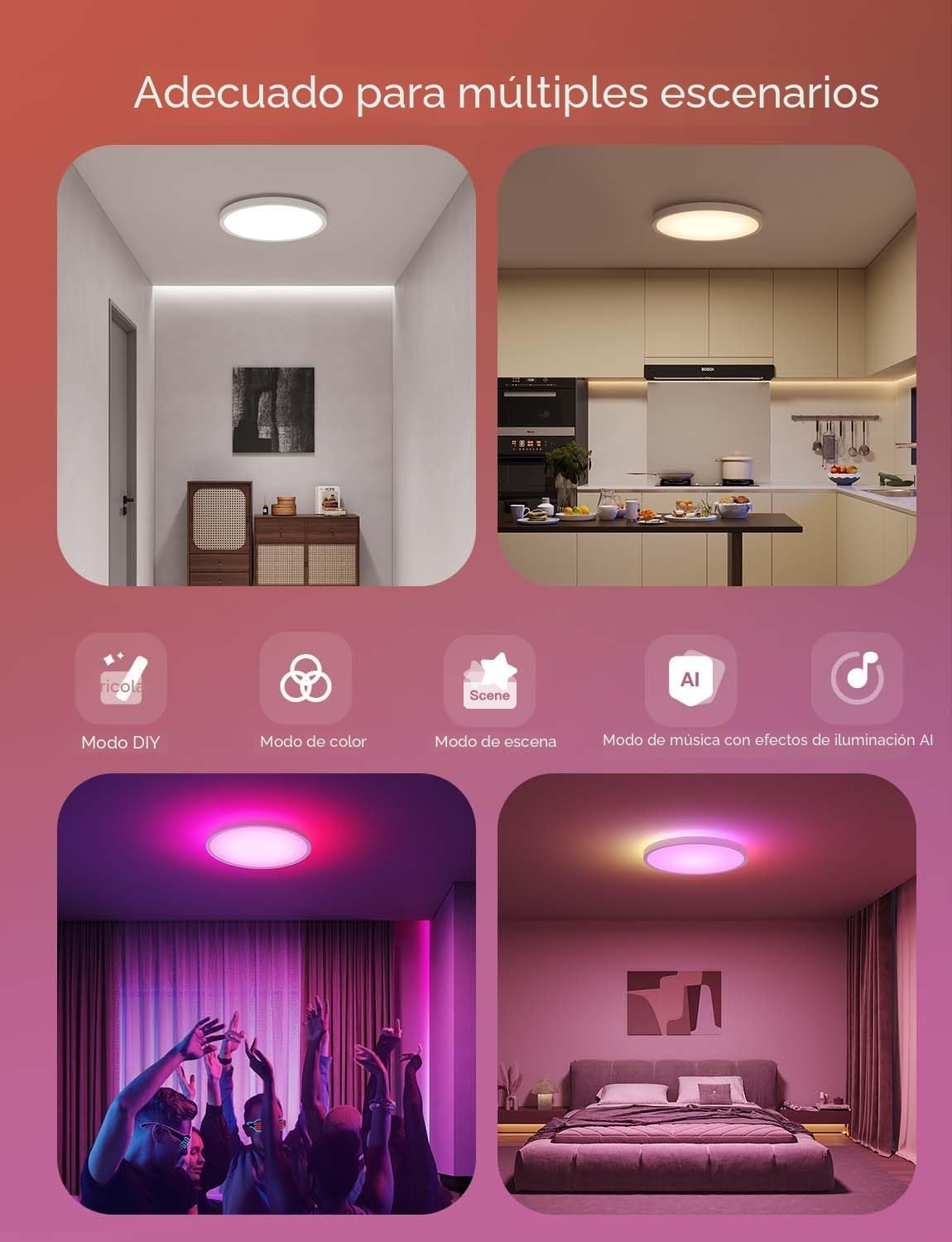 Características especiales: Atenuable, Cambio de color, Temperatura de color ajustable, Temporizador