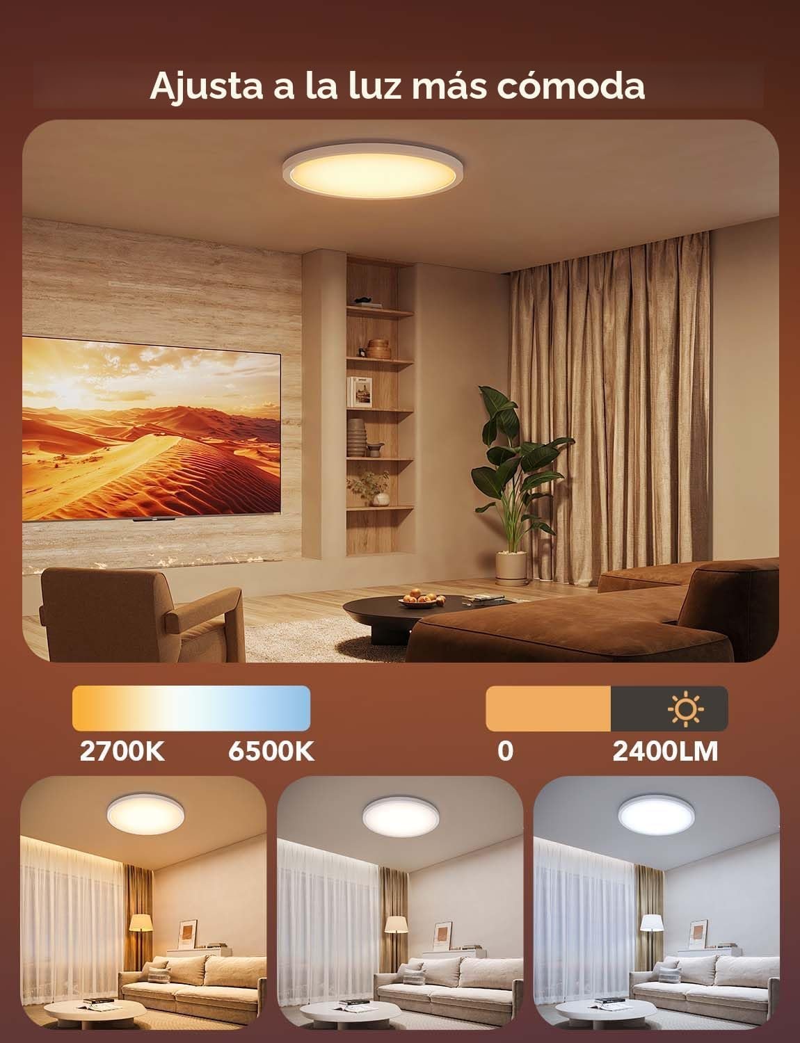 Componentes incluidos: 1 lámpara de techo, 1 placa base, 1 manual de usuario (idioma español no garantizado), 1 kit de accesorios