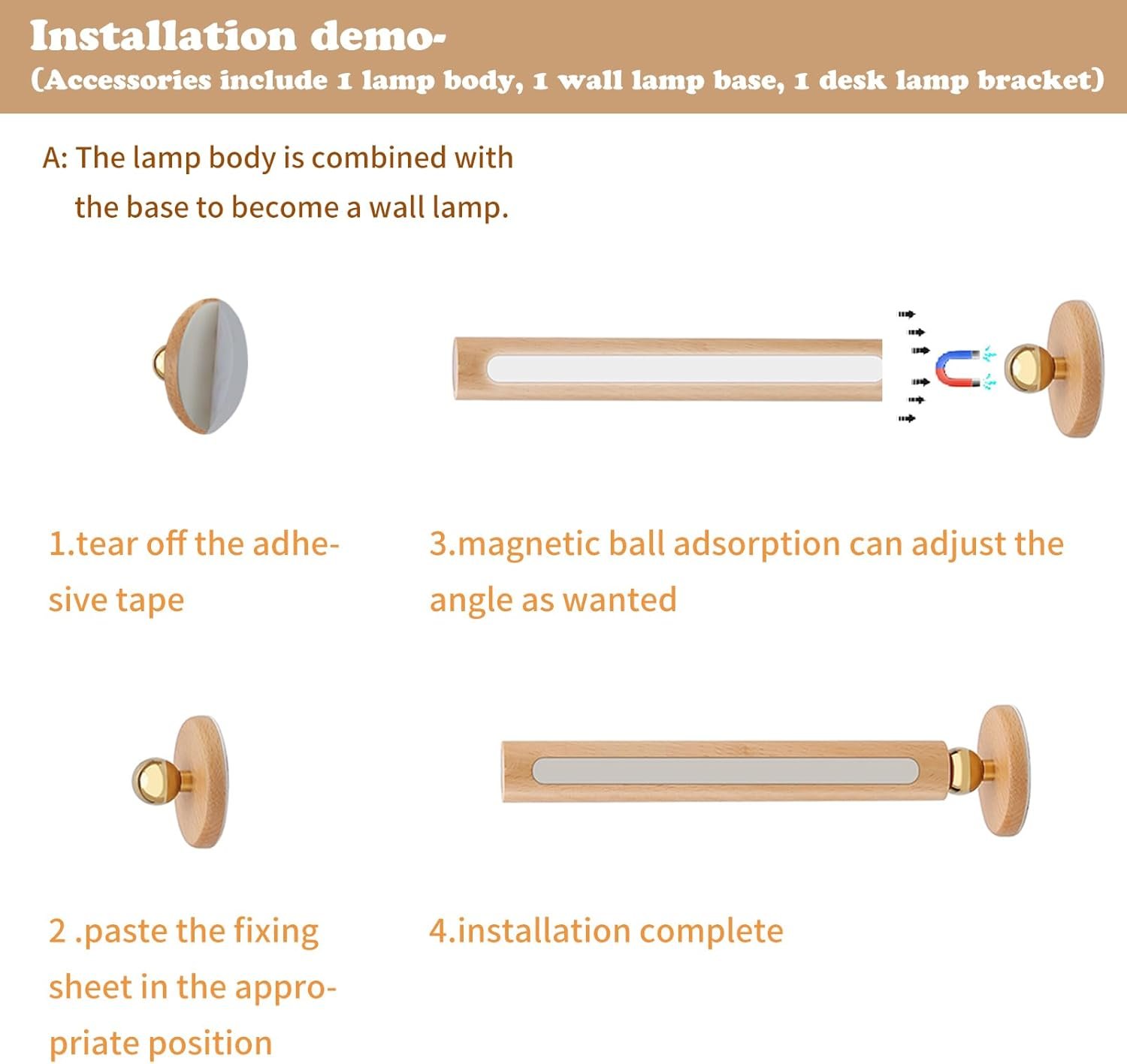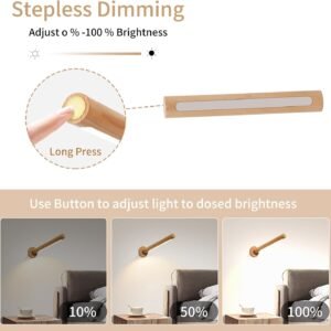 Rotación de 360° y portátil: el diseño con un fuerte soporte magnético giratorio hace que las luces de pared recargables giren suavemente 360° para ajustar cualquier ángulo de la luz y fijar firmemente el ángulo. Barra de luz portátil, por lo que también puedes llevarla contigo donde quiera que vayas. Batería recargable de gran capacidad: nuestra barra de luz magnética de escritorio cuenta con un diseño inalámbrico con una batería recargable integrada de 1000 mAh que tarda de 3 a 4 horas en cargarse completamente. Es con barra adhesiva de 9.8 ft y la instalación se completa en 1s. Después de la carga completa puede durar hasta casi 3-30 horas (según el nivel de brillo establecido). Regulable continuamente: nuestros apliques decorativos de pared controlados por un interruptor táctil, mantén presionado para una atenuación continua del 10% al 100%. Te permite personalizarlo de acuerdo a tus preferencias. Se puede utilizar en cualquier habitación como dormitorio, estudio, sala de estar, habitación de los niños en tu apartamento como luz de lectura, luz nocturna. Relámpagos multifunción Con su diseño de barra adhesiva, esta luz de aplique se puede colocar sin esfuerzo en cualquier lugar donde desees. Y puedes llevarlo a cualquier lugar que quieras decorar. Sirve como una opción de iluminación multiusos, funciona como lámpara de mesa, lámpara de pared para interiores o linterna portátil. Ampliamente utilizado: es ampliamente utilizado en armarios, salas de estar, dormitorios, escaleras y pasillos como luz de lectura, barra de luz para escritorio, luces de escritorio para oficina en casa, luz magnética. Muy adecuado para Navidad, Acción de Gracias, para tus padres, hijos, amigos, hombres, mujeres y niños.