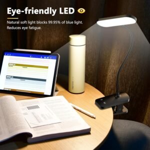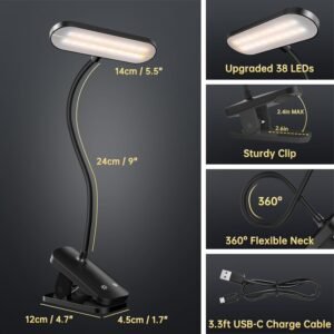 HECDSTLY Lámpara de escritorio con clip, luz de lectura alim