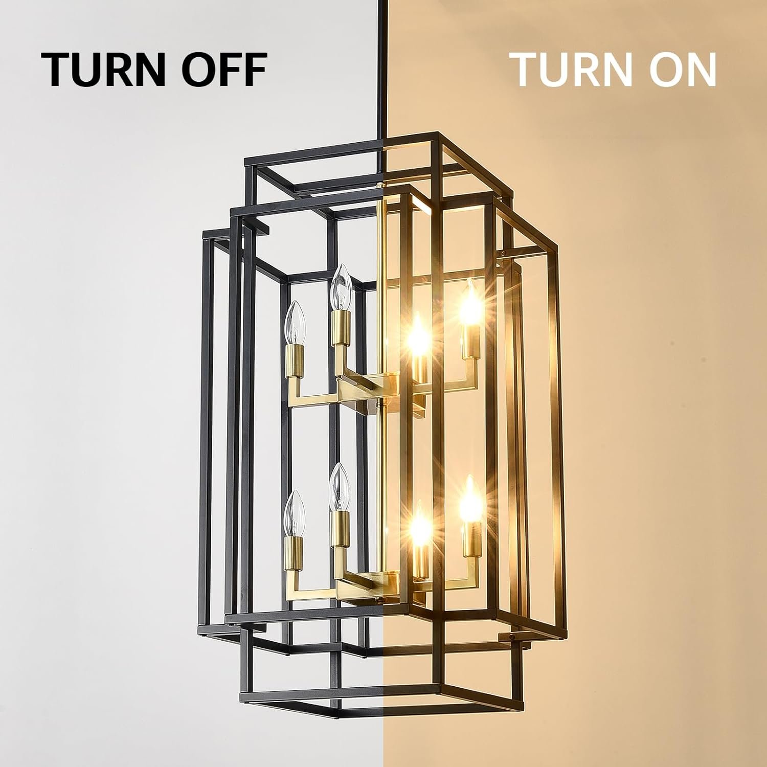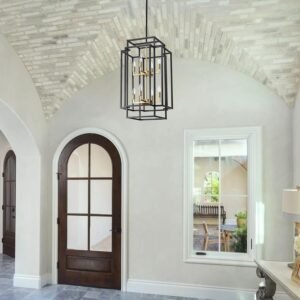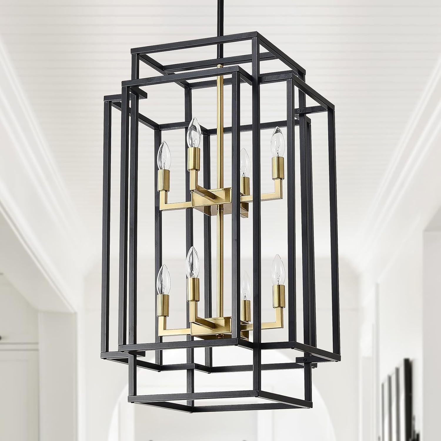 Diseño elegante: el candelabro de 8 luces cuenta con un marco de linterna y una base de candelabro dorada, que mide 81,3 cm. de alto x 46,0 cm W. Es un artículo decorativo perfecto para tu decoración interior. Su silueta limpia y acabado negro texturizado añaden un toque de estilo industrial y moderno a tu hogar sin abrumarlo. Este diseño bellamente moderno con un toque de glamour hace una declaración en la entrada o la cocina Altura ajustable: el cuerpo del accesorio de 81,3 cm, combinado con las barras de extensión incluidas (2,5 cm x 10,2 cm, 2,5 cm x 20,3 cm, 10,2 cm x 30,5 cm), ofrece una altura personalizable para colgar de 40 a 233,7 cm para adaptarse a varias alturas de techo Áreas combinadas: la lámpara colgante escalonada de 8 luces es perfecta para varios espacios como comedor, vestíbulo, isla de cocina, sala de estar y espacios comerciales como restaurantes y hoteles. La lámpara colgante escalonada de isla de cocina, como un elemento llamativo eleva el nivel dimensional de tu casa Amplia compatibilidad de bombillas: los candelabros de isla de cocina admiten funciones de atenuación, lo que te permite crear el ambiente de iluminación perfecto (las bombillas y el interruptor de atenuación no están incluidos). Requiere 8 bombillas E12, compatibles con varios tipos de bombillas incluyendo LED, Edison, incandescente, halógeno y CFL Instalación sin esfuerzo: las lámparas de entrada HHR de 8 luces de 81,3 cm vienen con todos los accesorios de montaje necesarios, manual y video de instrucciones (idioma español no garantizado), por lo que es fácil de instalar en cualquier área como quieras. La moderna lámpara de cocina es aplicable para techos planos, inclinados y abovedados