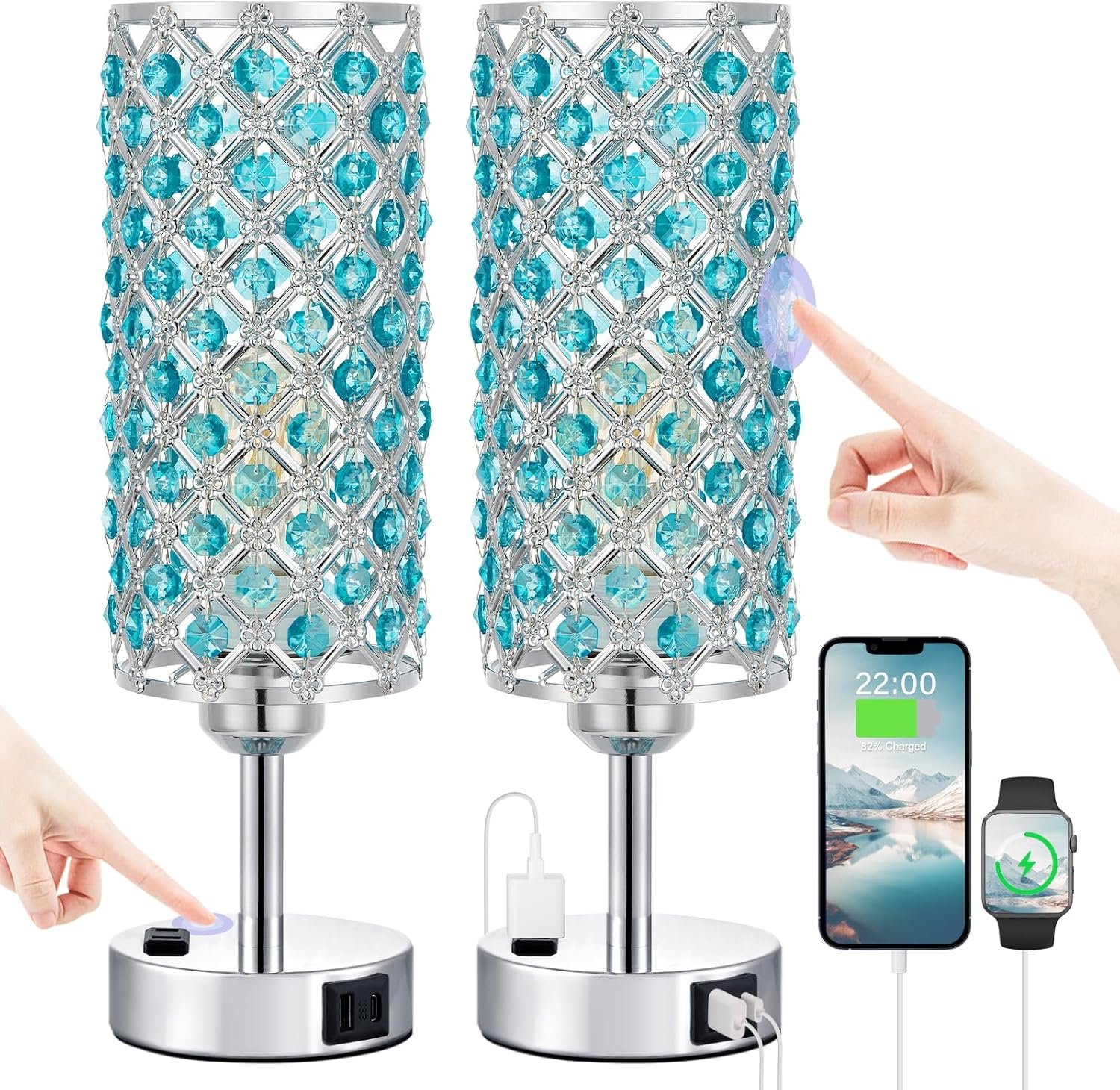 Hong-in Juego de 2 lámparas de cristal azul con control táct
