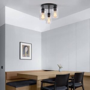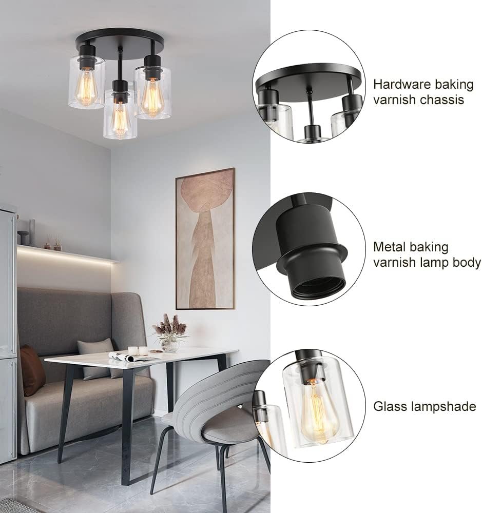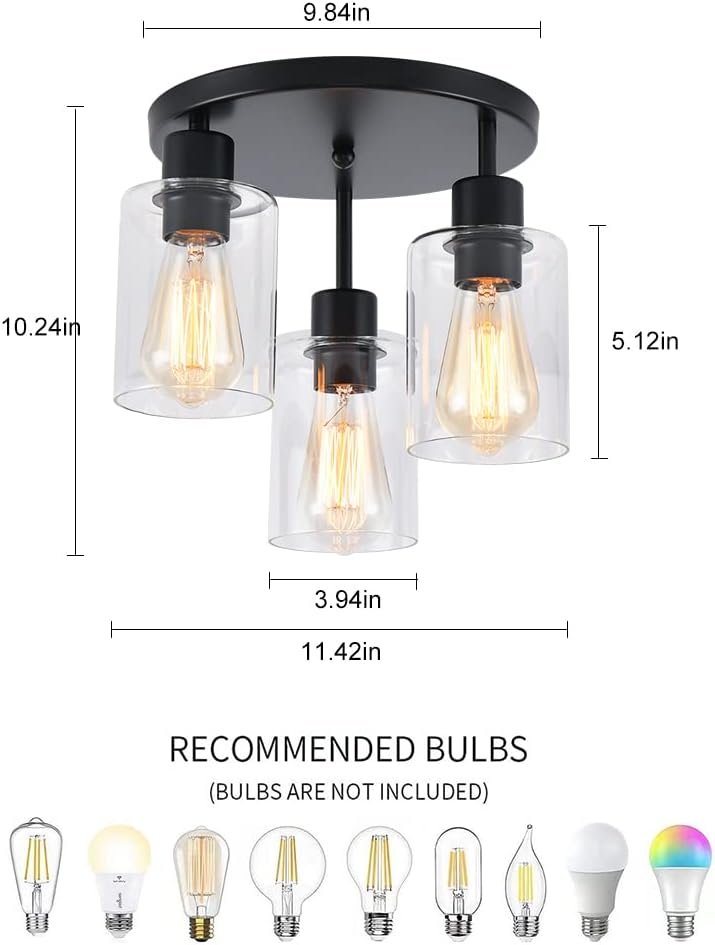 Diseño de lámpara de techo de granja: diseño vintage mezclado con elementos industriales y contemporáneos, pantallas de vidrio transparente de alta calidad, que es perfecto para cocina, entrada, pasillo, comedor, sala de estar, lavandería, balcón y más. Y también es ideal para distritos de negocios: bares, cafeterías, restaurantes y hoteles. Lámpara de techo rústica resistente : Diámetro del toldo: 25,0 cm, tamaño total (ancho x alto): 24,6 cm x 32,3 cm. La exquisita pantalla de cristal está hecha de vidrio de alta calidad, que es resistente a altas temperaturas y tiene una larga vida útil; la base de hierro de alta calidad está tratada con tecnología de pulverización de polvo, que es anticorrosión, no se oxida y duradera. Varias compatibilidades : las lámparas de techo de baño aplican 3 enchufes estándar E26 resistentes al calor (máx. 60 W), esta lámpara de bronce aceitado será totalmente regulable (para un transporte seguro, no viene incluido). Y puede actualizar el aspecto del accesorio en cualquier momento simplemente reemplazando diversas bombillas. Fácil instalación : viene con una placa de techo universal y todos los accesorios de montaje para una instalación rápida, nuestra lámpara de techo empotrada es muy fácil de instalar. No hay procedimientos complejos y se puede disfrutar de una luz hermosa! Satisfacción garantizada: 12 meses de garantía Si por alguna razón no estás satisfecho con tu compra, ponte en contacto con nosotros y te proporcionaremos un servicio satisfactorio en la primera vez