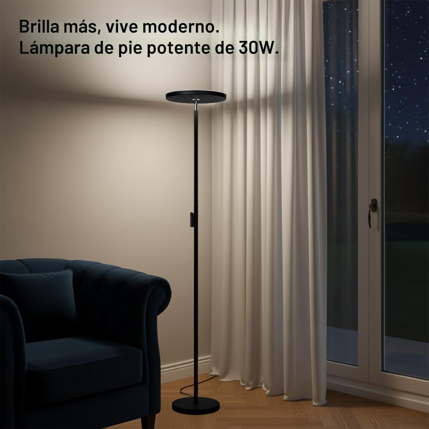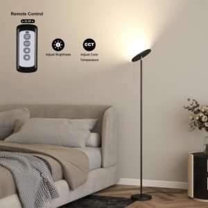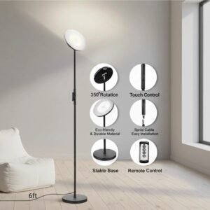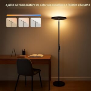 Múltiples formas de control: con el control remoto, puedes controlar fácilmente la lámpara de pie sin salir del sofá y la cama cálida (con un rango de 32.8 pies/10m). Control táctil adicional, ajuste de brillo continuo (brillo del 5% al 100%) con un toque prolongado ¡No más rincones oscuros: ilumina toda tu habitación sin esfuerzo! Esta lámpara de pie de 30 W ilumina cada esquina, llenando tu espacio con una luz vibrante y acogedora. Ya sea que estés leyendo, recibiendo invitados o creando el ambiente perfecto, su diseño potente combina sin problemas estilo y funcionalidad para mejorar cualquier habitación 3 temperaturas de color y atenuación continua: la lámpara de pie Joofo tiene un ajuste de brillo continuo, así como tres ajustes de temperatura de color ajustables de 3000 K a 5000 K, para luz blanca cálida, blanca natural y blanca fría. Recuerda tus ajustes entre usos y cuando se interrumpe la energía Ahorra espacio y base segura: La base es muy pesada. Segura para tu bebé y mascotas. La base proporciona una buena estabilidad contra caídas que puede garantizar la seguridad y estabilidad. Y diseño que ahorra espacio, puedes ponerla debajo de tu sofá o esquinas estrechas. Rotación de 350 grados puedes ajustar cualquier ángulo que necesites para que la luz se ajuste a ti Luz direccional y sin deslumbramiento: La superficie iluminada se puede girar 350 grados y se puede inclinar a cualquier ángulo entre completamente vertical y casi paralelo al suelo. La altura de 175 cm/175,3 cm y la parte superior inclinable facilitan evitar el deslumbramiento de la superficie iluminada. Dirigida hacia una esquina, la lámpara proporciona una gran iluminación difusa cuando estás en una videoconferencia