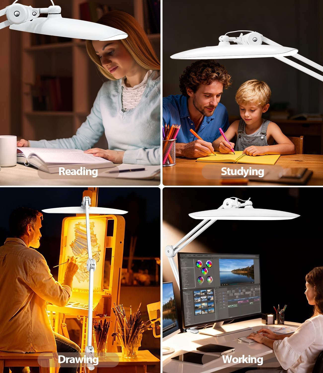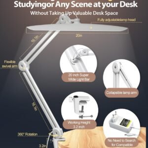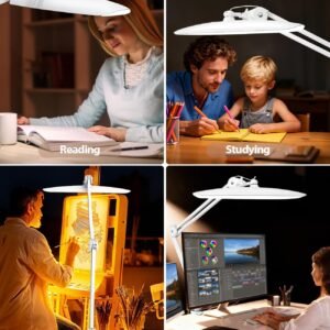 Proteja sus ojos, aumente su productividad: ¡invierta en la salud y eficiencia de sus ojos! Alimentada por 24 W con 182 cuentas LED de alta calidad, sin parpadeo, nuestra lámpara proporciona una iluminación excepcional de alto CRI (índice de reproducción cromática). Esto significa que los colores se ven más reales, los detalles son más nítidos y el cansancio ocular se reduce significativamente, incluso durante sesiones de trabajo maratonianas. Es la solución de iluminación ideal para cualquier persona apasionada por la lectura, la artesanía, el dibujo, la edición de video o cualquier pasatiempo de precisión que requiera un enfoque extendido. Transforme su espacio de trabajo con una iluminación superior: Eleve su enfoque y precisión con nuestra lámpara de escritorio LED premium de 50,8 cm con abrazadera. Diseñada tanto para profesionales como para entusiastas, esta lámpara ofrece un brillo amplio y brillante en toda tu área de trabajo. Su impresionante brazo ajustable de 99,1 cm te ofrece una flexibilidad sin igual, perfecto para tu monitor de computadora de pantalla dual, banco de trabajo, ya sea que estés trabajando en una mesa de dibujo de gran tamaño, un banco de trabajo detallado o tu configuración de oficina en casa. ¡Diga adiós a las sombras y hola a la visibilidad cristalina! Tu Luz, Tu Camino: Experimenta el máximo control sobre tu iluminación. Nuestra lámpara de escritorio avanzada con clip presenta una interfaz táctil intuitiva que te permite cambiar sin esfuerzo entre tres temperaturas de color distintas (desde un cálido 3000K hasta un frío 6500K). Una simple pulsación larga activa la atenuación continua, lo que te permite ajustar el brillo de un sutil 10% a un potente 100%. Desde intrincado arte de uñas hasta sesiones de estudio enfocadas o exigentes trabajos de oficina, edición de video, esta luz con clip para escritorio se adapta al instante a todas tus necesidades. Estabilidad inquebrantable, configuración sin esfuerzo: ¡La instalación es muy fácil! Esta lámpara de escritorio LED duradera con abrazadera cuenta con un brazo oscilante de metal resistente y una abrazadera giratoria de 360°, diseñada para la máxima estabilidad y versatilidad. Fijarlo de forma segura a casi cualquier superficie, desde delicadas mesas de manicura hasta bancos de trabajo resistentes, hasta 6,3 cm de grosor. Su diseño robusto garantiza un agarre firme y antideslizante sin herramientas complicadas ni montaje frustrante. ¡Solo sujétalo, conéctalo y ilumina! Actualice a una solución de iluminación más inteligente y ecológica: esta excepcional lámpara de escritorio con clip no solo es brillante; es increíblemente eficiente en energía, reduciendo su consumo de electricidad hasta en un 80% en comparación con las lámparas tradicionales. Puedes contar con años de luz brillante y constante, lo que la convierte en una opción verdaderamente sostenible para cualquier lámpara de escritorio de oficina en casa. Reduce tu huella de carbono, disminuye tus facturas de energía y disfruta de un rendimiento confiable a largo plazo que es bueno tanto para tu cartera como para el planeta.