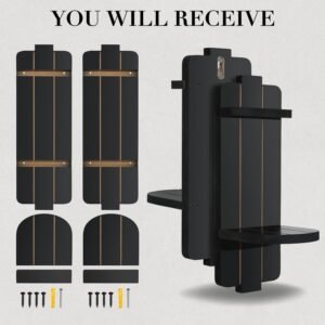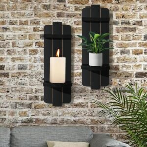 **Estantes y decoración versátiles para velas** – Este juego de 2 candelabros de madera rústica negra sirve como portavelas y estante decorativo. Perfecto para mostrar objetos pequeños como plantas, fotos o coleccionables mientras añade un ambiente acogedor a tu espacio. **Ideal para cualquier habitación** Perfectamente adecuado para cualquier área de tu hogar, incluyendo el pasillo, entrada, sala de estar, dormitorio, comedor, chimenea de chimenea, oficina o baño. Un encantador toque de granja que mejora la estética de tu hogar y es un maravilloso regalo para los entusiastas de la decoración de granja. **Material duradero y de alta calidad** – Hecho de madera MDF de primera calidad para una mayor resistencia y resistencia a la corrosión, estos apliques están diseñados para durar. Cada portavelas mide 39,9 cm x 12,7 cm (15.7 in x 5.0 in) con una resistente placa de vela de 12,7 cm, diseñada para sostener tus velas favoritas. **Encantador diseño de país francés** – Aporta un toque de elegancia de inspiración europea a tu hogar con estos apliques de pared de madera. El estilo rústico, vintage y el acabado de madera se combinan para crear un ambiente acogedor y sofisticado, perfecto para cualquier espacio temático de granja. **Fácil de instalar y resistente** – Incluye todos los accesorios necesarios para una instalación sin complicaciones. Montaje simple de tornillo, estos apliques están montados de forma segura en cualquier pared, asegurando estabilidad y uso duradero sin la preocupación de que se caigan.