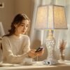 - Lámparas con puertos USB: Estas lámparas incluyen prácticos puertos de carga USB (120 V 60 Hz) que permiten cargar dos dispositivos electrónicos simultáneamente. Funcionan tanto si la lámpara de mesilla de noche está encendida como apagada. Súper prácticas para ti y tu familia.
