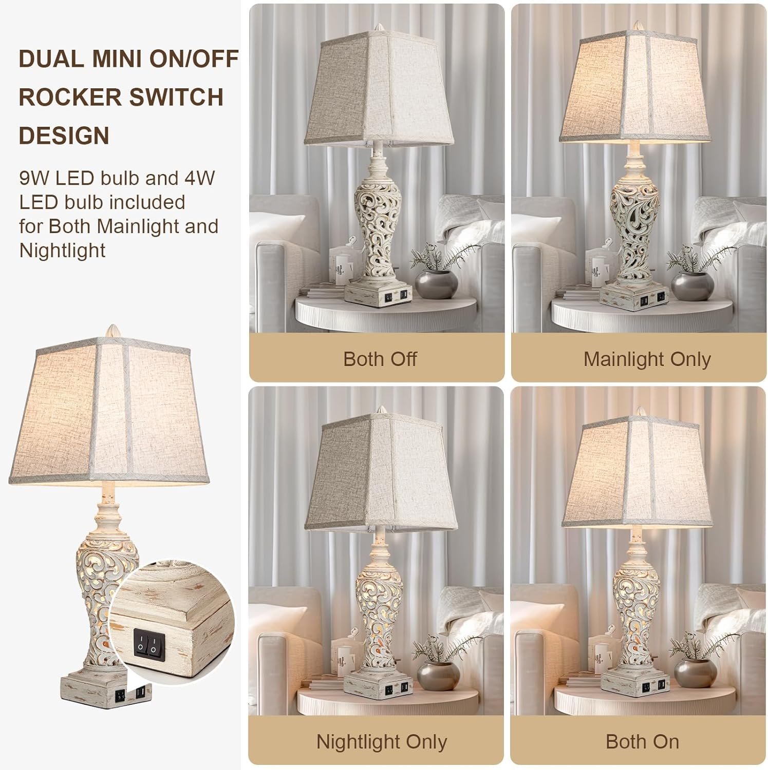- Lámparas de mesa rústicas que cuidan la vista: La pantalla de tela de lino y la luz nocturna suavizan la luz y protegen tus ojos. Ideales para leer o trabajar. ¡Estas lámparas son el regalo perfecto para familiares y amigos!