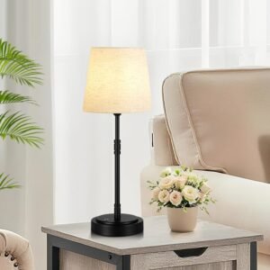 Lámparas inalámbricas de 38,1 cm con diseño elegante: disfruta de una comodidad completa sin cables con nuestro juego de 2 lámparas de mesa recargables. Estas lámparas que funcionan con pilas eliminan los cables desordenados, su bonito tamaño compacto de 38,9 cm las hace perfectas pequeñas lámparas de mesa para dormitorios, oficinas o cafeterías, colócalas en cualquier lugar sin necesidad de tomacorriente. La base de metal de inspiración vintage y la pantalla de lino crean un brillo cálido y acogedor. Atenuación suave sin escalones: Personaliza tu experiencia de iluminación con control de brillo sin pasos (5-100%). La lámpara a batería cuenta con controles táctiles simples: toca para encender/apagar, mantén presionado para ajustar. El LED blanco cálido de 3000K es perfecto para trabajar (100%), relajarse (50%) o crear ambiente (5%). Ideal para leer, trabajar o establecer un ambiente acogedor. Vida útil de la batería más prolongada: Disfruta de 8-40 horas de iluminación inalámbrica (varía según el brillo) con la potente batería recargable de 7500 mAh. Se carga completamente en 4-6 horas a través del cable USB incluido, perfecto para cortes de energía o uso en exteriores. Consejo profesional: Para obtener los mejores resultados, cargue completamente hasta que el indicador se ponga verde antes del primer uso, la lámpara es compatible con el adaptador de 5V/3A. Compatibilidad con bombillas E26: el juego de 2 lámparas de mesa inalámbricas incluye 2 bombillas LED de bajo voltaje (5V). Para otras bombillas de repuesto, elige bombillas LED de bajo voltaje (5 V) con base E26. Importante: NO son compatibles las bombillas domésticas estándar de 120 V. Para un rendimiento de iluminación y seguridad óptimos, utiliza solo el cargador USB incluido con bombillas de bajo voltaje compatibles. Regalo de decoración ideal: cada linda lámpara de mesa pequeña presenta una base de metal duradera con acabado texturizado y pantalla de lino con protección para los ojos. Con 38,9 cm de alto y 16,0 cm de ancho, proporcionan una iluminación ambiental perfecta sin ocupar mucho espacio. ¡Elija entre acabados clásicos de oro vintage o negro mate, perfectos para decoración ideal del hogar o regalos de festivales! Excelente servicio al cliente: respaldamos la calidad de nuestras lámparas alimentadas por batería. Si tienes algún problema, ponte en contacto con nosotros a través de cmContactar con el vendedor cm para una solución rápida dentro de las 24 horas. ¡Tu satisfacción es nuestra prioridad!