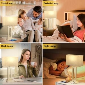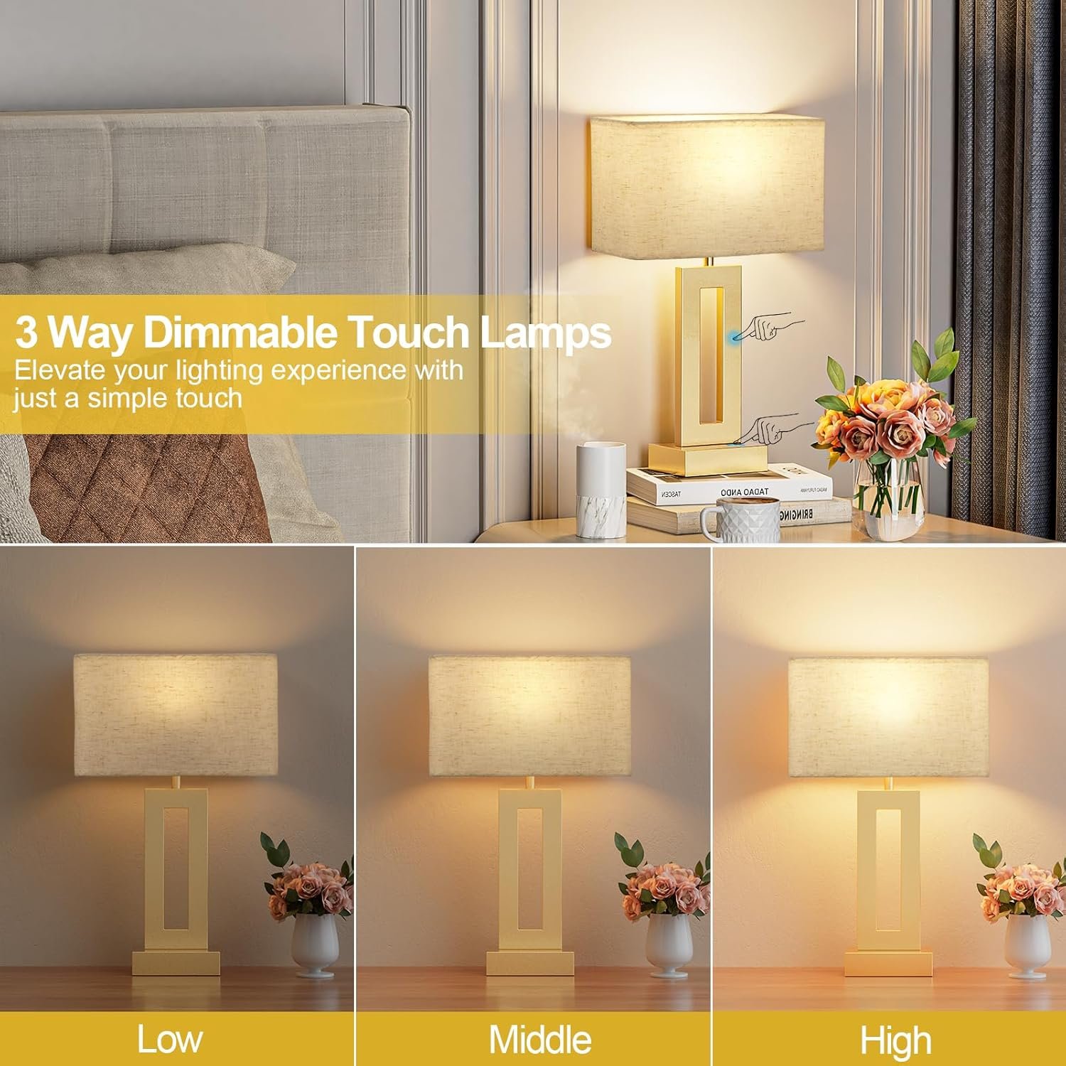 Elegancia atemporal y atractivo versátil: este juego de 2 lámparas de mesa cuenta con una cautivadora varilla dorada y una elegante decoración de pantalla de tela, que exuda elegancia atemporal que complementa sin esfuerzo innumerables estilos, desde modernos y minimalistas hasta contemporáneos, industriales y tradicionales. Con una altura de 41,7 cm, estas lámparas de mesa superan a la mayoría de las doradas disponibles en el mercado. Son únicas, perfectamente adecuadas para cualquier espacio, ya sea un dormitorio, sala de estar, oficina o mesa auxiliar. Control táctil regulable de 3 vías Con la capacidad de atenuar en 3 niveles diferentes, estas lámparas para dormitorio brindan la máxima comodidad a tu espacio. Un simple toque en el cuerpo o la base de las lámparas de dormitorio permite personalizar sin esfuerzo el brillo, lo que te permite crear sin esfuerzo el ambiente para cualquier ocasión. Ya sea que desee un ambiente sereno al 25%, sumérjase en una lectura cautivadora al 60% o ilumine su espacio con pleno brillo, estas lámparas están aquí para satisfacer todas sus necesidades. USB C+A mejorado No más buscar tomas de corriente o sacrificar espacio en el escritorio. El puerto USB de nuestra lámpara dorada está discretamente oculto en la parte posterior, asegurando una apariencia elegante mientras proporciona capacidades de carga. Esta lámpara táctil cuenta con puerto USB-C+A en la base de la lámpara de mesita de noche. Esto le permite cargar sin esfuerzo dos dispositivos simultáneamente, ya sea su teléfono o cualquier otro dispositivo. Lo que es aún más conveniente es que los puertos USB permanecen operativos independientemente de que la lámpara de la mesita de noche esté encendida o apagada. Bombillas LED E26 incluidas: no hay necesidad de preocuparse por comprar bombillas individuales para este exquisito juego de 2 lámparas de mesita de noche. Hemos hecho un esfuerzo adicional al incluir dos bombillas que mejoran perfectamente el atenuador de 3 vías. Experimenta la máxima perfección de iluminación con nuestra lámpara de mesa dorada que cuenta con un funcionamiento silencioso y sin parpadeos. Sumérgete en el ambiente tranquilo y déjate cautivar por el fascinante resplandor que estas lámparas modernas emiten sin esfuerzo, creando una atmósfera de pura felicidad. Fácil instalación La instalación de estas lámparas de sala de estar es muy simple, solo 3 pasos para obtener hermosas lámparas táctiles para dormitorios en poco tiempo. Al mismo tiempo, estamos comprometidos a proporcionar a nuestros clientes una excelente experiencia de compra. Si tienes alguna pregunta sobre nuestro juego de 2 lámparas, te proporcionaremos el servicio más rápido y amigable dentro de 24 horas.