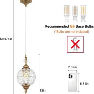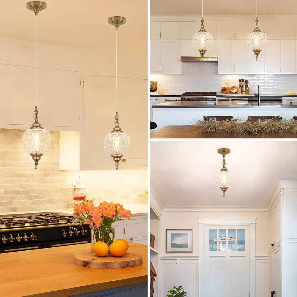 Paquete de 2 luces ajustables para isla de cocina: las luces colgantes vintage cuentan con un cable de suspensión ajustable (máx. 188,0 cm) para adaptarse perfectamente a tu espacio. Ideal para iluminar sobre islas de cocina, mesas de comedor, rincones de desayuno o en casas de estilo granja Fácil instalación y diseño de pantalla de vidrio dividido: con una pantalla de vidrio dividido fácil de usar que simplifica el manejo y reduce el riesgo de roturas, esta luz colgante requiere. El delicado patrón crea impresionantes reflejos de luz, añadiendo un toque de elegancia antigua a tu habitación Construcción de metal dorado y vidrio de alta calidad: fabricada con metal duradero con acabado dorado y vidrio de alta transparencia, esta iluminación colgante irradia lujo moderno y resistencia contra el deslustre. Ofrece un brillo cálido y difuso que eleva la estética de cualquier habitación Compatibilidad con bombillas G9 y eficiencia energética: listas para bombillas G9 estándar, estas lámparas colgantes de cocina admiten opciones LED de ahorro de energía, reduciendo los costos a largo plazo y el impacto ambiental. Personaliza el brillo y la temperatura del color para tareas o iluminación ambiental Soporte posventa confiable: respaldado por un intercambio de 30 días y reemplazo de 5 años (estándar de la industria: 1-3 años); si tienes alguna pregunta o sugerencia, lo resolveremos en 24 horas
