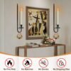 Elegante decoración del hogar y luces de vela: nuestro portavelas de pared es una impresionante adición a cualquier decoración del hogar. Presenta un diseño elegante que mejora instantáneamente la estética de tu espacio vital. Este artículo no es solo una hermosa pieza decorativa, sino también una solución de iluminación práctica. Las luces que funcionan con pilas añaden un brillo cálido y acogedor, creando un ambiente acogedor. Práctico funcionamiento con control remoto: las velas que funcionan con pilas de este juego se pueden controlar sin esfuerzo con un control remoto. Puede encenderlos y apagarlos, e incluso configurar un temporizador a distancia. Esto hace que sea extremadamente conveniente para usar en cualquier habitación. Además, puedes cambiar la llama a un modo parpadeante, lo que la hace increíblemente realista. Larga duración: las velas sin llama deben enchufarse a 2 pilas AA (no incluidas) para su uso. Son extremadamente eficientes energéticamente. Debido a su bajo consumo de energía, se pueden utilizar durante mucho tiempo sin agotar las baterías rápidamente. No tendrás que preocuparte por reemplazar las baterías constantemente. Seguras y fiables: las velas que funcionan con pilas incluidas con nuestro portavelas de pared son sin llama y sin humo, proporcionando una alternativa segura a las velas tradicionales. No hay riesgo de daños por incendio o humo, lo que los hace ideales para familias con niños y mascotas. La instalación es muy simple y rápida. Adecuado para varios escenarios: estas luces de pared se pueden utilizar en varias áreas de tu hogar, como la sala de estar, dormitorio, chimenea, baño o pasillo. Además, es perfecto para festivales, bodas y fiestas. Las luces que funcionan con pilas se pueden ajustar a diferentes ajustes para que coincida con tu estado de ánimo y decoración, añadiendo un toque de elegancia a cualquier ocasión.