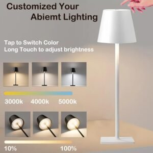 Diseño recargable: Prácticas lámparas de mesa inalámbricas con baterías recargables incorporadas, eliminando la necesidad de una conexión constante a la corriente y proporcionando opciones de colocación flexibles Control táctil: El funcionamiento táctil sensible al usuario permite un fácil ajuste de los niveles de iluminación con simples toques, perfecto para crear el ambiente deseado Uso versátil: ideal tanto para interiores como exteriores, desde mesas de comedor de restaurantes hasta espacios de patio, estas lámparas portátiles añaden una iluminación elegante donde sea necesario Juego de dos: solución de iluminación completa con dos lámparas de mesa blancas a juego, perfectas para crear arreglos de iluminación simétricos o iluminar múltiples áreas Tamaño compacto: El diseño de tamaño pequeño de estas lámparas LED las hace perfectas para la colocación sobre una mesa sin abrumar el espacio, mientras proporcionan una iluminación eficiente