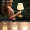 Beneficios del producto: Diseño inalámbrico para mayor comodidad, atenuación continua para una iluminación versátil, batería recargable incorporada para portabilidad, diseño elegante para decoración del hogar