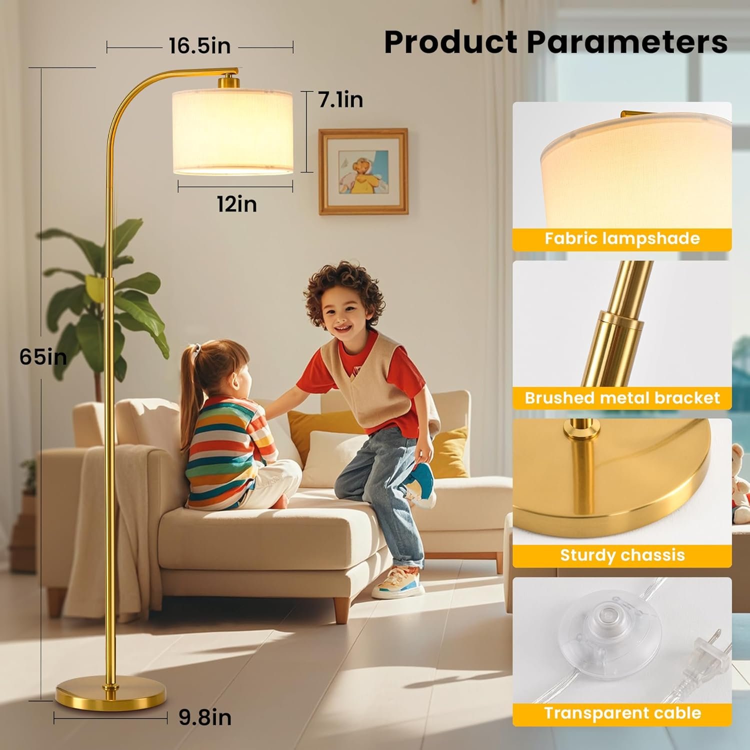 Lámpara de pie moderna : Esta lámpara de pie tiene una pantalla de tela que suaviza la luz para mayor comodidad y protección de los ojos. Este diseño único y elegante aportará un ambiente bohemio a tu habitación y embellecerá tu espacio. Bombilla LED de 9 W: esta lámpara de pie viene con una bombilla LED tricolor de 9 W, eliminando la necesidad de volver a comprar la bombilla, esta bombilla es muy duradera, con nuestra lámpara de pie para darte un ambiente acogedor (el control remoto no incluido) 3 temperaturas de color ajustables La bombilla de la lámpara de pie se puede ajustar a 3 temperaturas de color, luz cálida de 3000 K, luz neutra de 4500 K, luz blanca de 6000 K, puedes elegir la temperatura de color adecuada de acuerdo a tus necesidades. Base estable Esta lámpara de pie para sala de estar está hecha de metal duradero, y la base con peso evitará que se caiga cuando la golpeen niños o mascotas. Fácil de instalar La lámpara de pie es fácil de montar sin necesidad de herramientas, solo tienes que atornillar todas las piezas siguiendo las instrucciones; si tienes algún problema con la lámpara decorativa de pie, ponte en contacto con nosotros a través de un mensaje de comprador-vendedor para un reemplazo o reembolso.