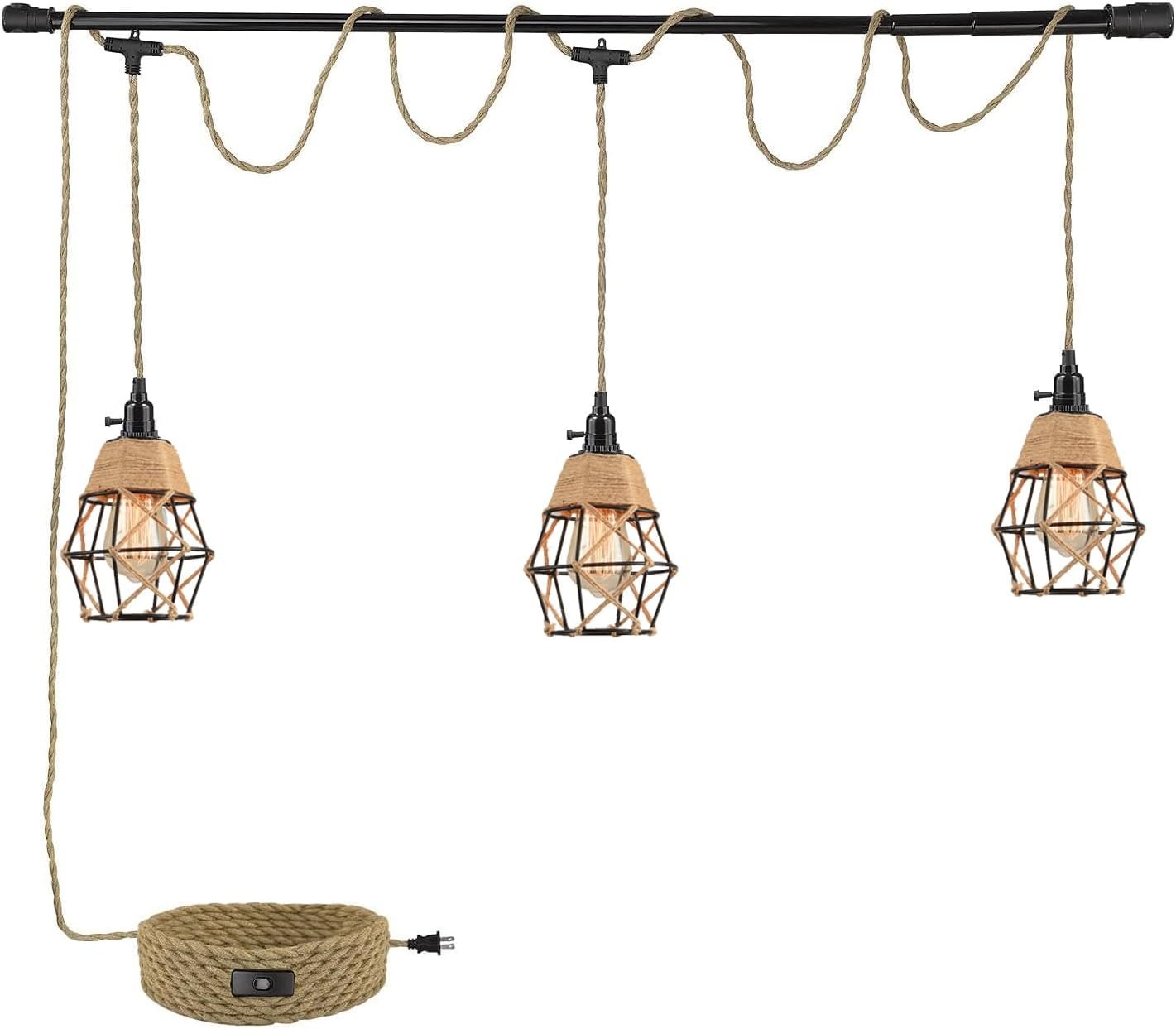 Lámpara colgante de 3 luces con cable enchufable, lámpara co