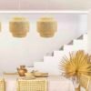 【Todo natural y ecológico】Esta Lámpara colgante de ratán tejida a mano está hecha de bambú 100% natural con una estructura resistente y accesorios resistentes al calor.