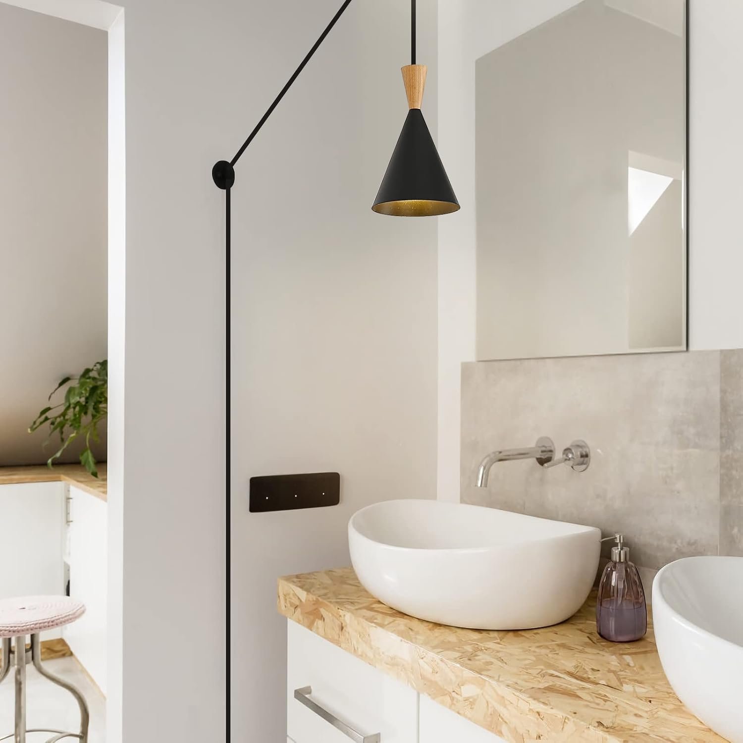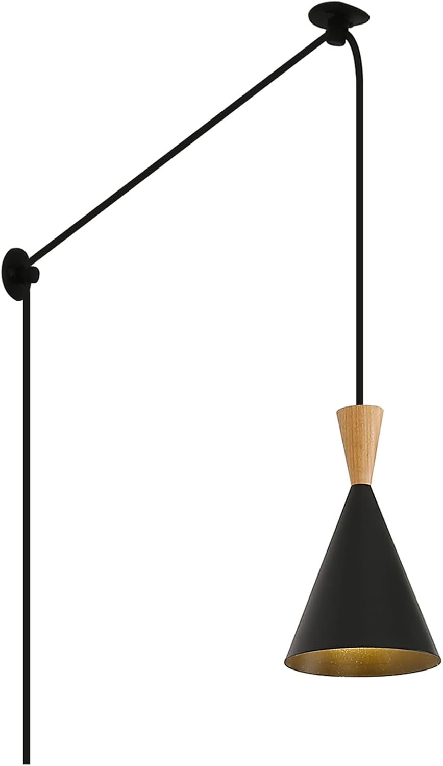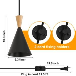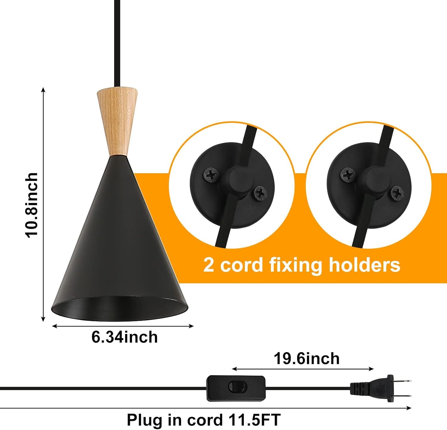 Diseño compacto atemporal: esta lámpara colgante enchufable está hecha de madera y hierro, con pantalla en forma de reloj de arena, aspecto elegante y hermosas líneas. Puede ser bien compatible en cualquier estilo de habitación sin ser discordante. Ya sea que su estilo de decoración sea moderno, contemporáneo, rústico, industrial, práctico, retro y rústico, se puede integrar bien. Amplia aplicación: esta lámpara colgante con enchufe puede ser ampliamente utilizada. En la esquina, sobre la isla o el fregadero, sobre la mesa del comedor, al lado de la cama, sobre la mesa de café, en el pasillo, etc. Este candelabro con enchufe es una gran opción de iluminación. Es perfecto como iluminación secundaria, iluminación de acento o luz de crecimiento para interiores. Altura ajustable en cualquier momento: los dos fijadores de cable de goma de esta lámpara colgante no solo pueden fijar la posición de la luz colgante, sino también ajustar la altura de la luz en cualquier momento. Puedes cambiar la altura de la lámpara ajustando la longitud del cable que pasa por la luminaria. Fácil de instalar: uso individual, 2 juegos o 3 juegos, se instala en cualquier área de la habitación. Simplemente fije los dos fijadores al techo y la pared con tornillos (incluidos en el paquete) (también se puede instalar techo inclinado). Fuente de alimentación a través de toma de pared o regleta de enchufes. Dimensiones y especificaciones: La altura de la pantalla de esta lámpara colgante con enchufe es de 21,6 cm, el diámetro de la parte inferior es de 16,1 cm, el diámetro de la parte superior de madera es de 5,0 cm y la longitud del cable con interruptor es de 11.5 pies. Enchufe de tornillo medio estándar E26 de EE. UU., la potencia máxima es de 40 W. Compatible con bombillas CFL, LED, incandescentes (no incluidas).
