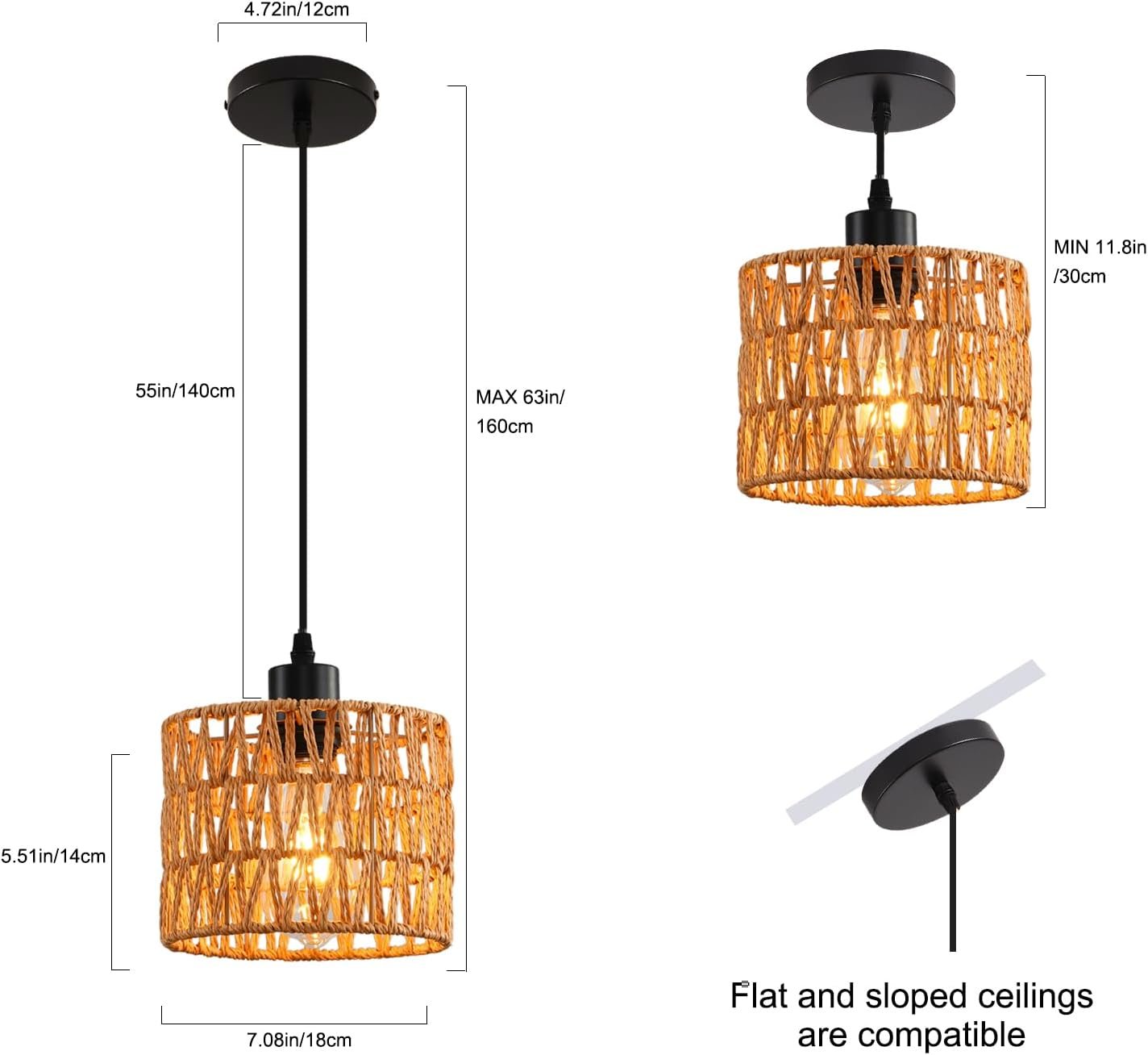 Las lámparas colgantes ajustables con base estándar E26 son compatibles con varias bombillas incandescentes, lámparas halógenas, CFL o bombillas LED, con una potencia máxima de 60W y un voltaje de 110V (las bombillas no están incluidas). Las luces de isla para la cocina están hechas de metal y completarán una decoración única para tu hogar. Este candelabro es perfecto para familias a las que les gustan los estilos minimalistas modernos. El cable de la lámpara colgante es ajustable con una longitud máxima de 139,7 cm. Por lo tanto, puede ajustarlo para adaptarse a sus necesidades de iluminación. Este tipo de lámpara también es adecuada para techos planos e inclinados. ¡Todo lo que necesitas hacer es instalar la base, luego conectar el soporte de la lámpara a la pantalla, luego atornillar la bombilla para completar la instalación! La base es compatible con techos inclinados o planos. Todos los accesorios de instalación están incluidos en la caja. Las luces colgantes de madera son adecuadas para islas de cocina, iluminación de porche, pasillos, bares, restaurantes, salas de estar, cafeterías, clubes, vestíbulos, graneros y muchos otros lugares interiores y exteriores