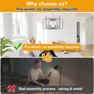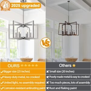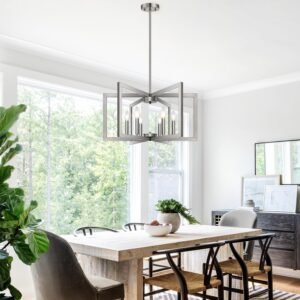 Estilo y diseño: este moderno candelabro cuenta con 6 marcos geométricos cuadrados de metal, cada uno con un soporte para lámpara. El diseño limpio y minimalista crea un aspecto moderno, y cuando los marcos se despliegan, se asemeja a una flor que florece, añadiendo un toque de elegancia a cualquier espacio como la isla de la cocina, la sala de estar, el vestíbulo, la mesa de comedor, la entrada, el dormitorio, la casa de campo y la oficina. Parcialmente premontados y fácil instalación: los brazos de la lámpara vienen premontados, simplemente despliégalos y conecta dos marcos para completar el montaje de tu candelabro de níquel cepillado, el montaje es muy fácil Además, la lámpara de comedor viene con todas las piezas necesarias e instrucciones detalladas para una instalación sin complicaciones. Calidad mejorada: este candelabro para comedor está fabricado con materiales duraderos de alta calidad para garantizar un rendimiento duradero. El marco de metal resistente está diseñado para resistir la flexión durante el uso o el transporte. Con un acabado de níquel cepillado mejorado, añade un toque elegante, mientras que el revestimiento antiarañazos y antioxidante garantiza que el candelabro mantenga su belleza original con el tiempo. Altura ajustable Esta lámpara de araña para comedor presenta un diseño de varilla de empalme estable para reducir el bamboleo y una altura ajustable de 64,0 cm a 155,4 cm, adecuada para techos inclinados o planos. Tiene 6 casquillos E12, compatibles con varias bombillas como LED y halógenas (bombillas no incluidas). El candelabro es regulable con bombillas compatibles y un interruptor de atenuación (interruptor no incluido). Servicio impecable: como vendedor responsable, Lynnoland proporciona una garantía de 36 meses y soporte técnico de un equipo profesional. Si hay algún problema con la lámpara de araña de granja, no dudes en ponerte en contacto con Lynnoland haciendo clic en cmContactar con el vendedor cm en la página, Lynnoland te proporcionará una solución satisfactoria en 24 horas.
