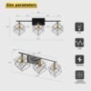 - El accesorio de iluminación de tocador de baño tiene un peso de 6.69 libras, dimensiones del paquete: 31.6 x 12.2 x 6.75 pulgadas con un estilo de pantalla moderna industrial clásica, giratoria, color negro mate con oro de piña, el material es de metal resistente con el acabado de cristal, usos específicos iluminan tu hogar y vida, especial Características: Pantalla de lámpara de cubo giratoria, material de pantalla: vidrio, dirección de la luz, luz hacia arriba o hacia abajo, fuente de alimentación, interruptor cableado, tipo de instalación es montaje en pared