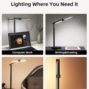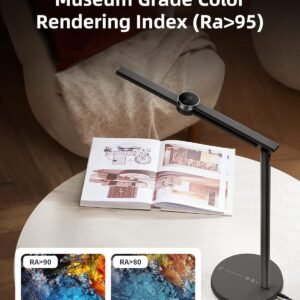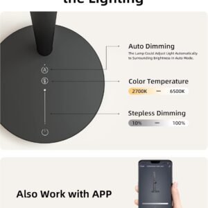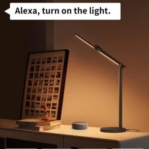 Tecnología de cuidado de los ojos: La lámpara de escritorio inteligente EZVALO está diseñada para ser suave, estable, sin deslumbramiento y sin peligro de luz azul, lo que puede proteger tu vista y permitirte trabajar o leer durante mucho tiempo sin fatiga ocular. Además, las lámparas de escritorio con tecnología LED avanzada ofrecen una reproducción cromática superior con RA > 95 Control de voz inteligente y control por aplicación: La lámpara de mesa inteligente EZVALO funciona con Amazon Alexa y Google Assistant, te permite controlar tus luces con tu voz. Enciende y apaga tu lámpara de escritorio led. O conecta tus lámparas de escritorio para oficina en casa a través de la APP Tuya para crear un ambiente que se adapte a tu estado de ánimo Tres temperaturas de color y atenuación continua: Con atenuación de brillo continua y 3 temperaturas de color (2700K~6500K), puedes ajustar fácilmente el brillo y las temperaturas de color para lograr el efecto de iluminación deseado. Haz que tu trabajo sea fácil y agradable Control táctil y atenuación inteligente AI: Toca el botón AI para configurar el ajuste automático del brillo, por lo que la lámpara de escritorio ezvalo con reloj cambiará su brillo basándose en tu entorno por sí misma, cuidando tus necesidades de iluminación diaria desde la mañana hasta la noche Diseño ajustable: Ajusta la barra de luz dentro de 128 grados y gira la cabeza de la lámpara de mesa dentro de 180 grados para dirigir la luz perfecta que deseas, ayudando a facilitar la creatividad en tu trabajo