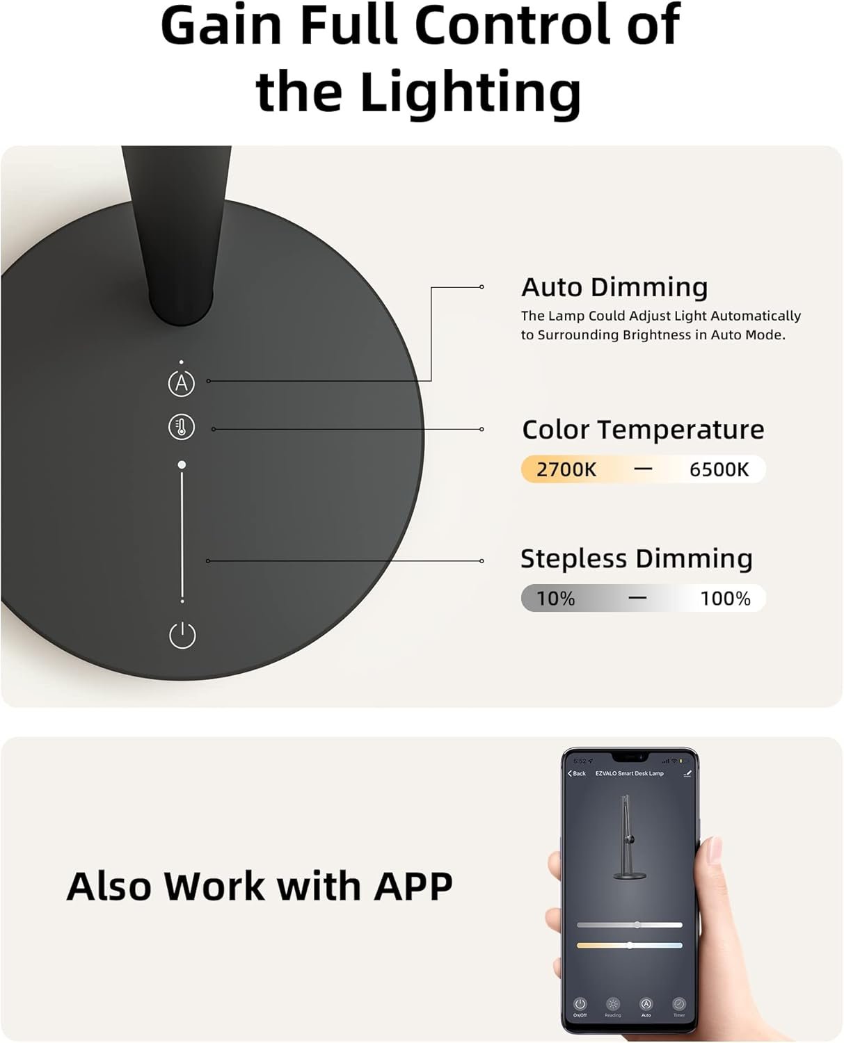 Lámpara de escritorio inteligente EZVALO con control por APP