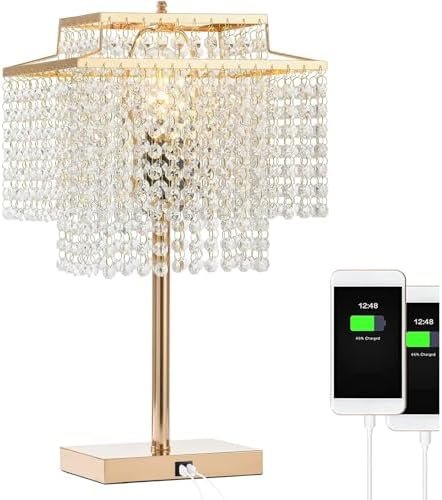 Elegante juego de iluminación de cristal: los colgantes únicos de cristal de doble capa emiten un aspecto elegante y exquisito, añadiendo un toque de encanto de lujo a nuestro hogar con una sensación de profundidad. Los cristales de alta calidad permiten que la luz se refracte y refleje perfectamente, creando fascinantes efectos de luz y sombra que son visualmente atractivos. Lámpara táctil con atenuación de 3 niveles: la lámpara táctil LED ofrece 3 niveles de brillo (bajo, medio, alto), simplemente toca la parte superior de la base para ajustar al brillo deseado. Práctica interfaz USB de 5 V/2.1 A: dos puertos USB integrados en la base de la lámpara, proporcionando más opciones de carga. Los puertos de carga USB duales pueden cargar teléfonos inteligentes, tabletas, bancos de energía, lectores Kindle o cualquier otro dispositivo alimentado por USB. Fácil de montar: cada hebra de cristal requiere montaje, lo que es simple y agradable. Con los enchufes de bombilla E26, ten en cuenta que las bombillas no están incluidas (por favor, confirma el tamaño antes de comprar). Garantía de 3 años y garantía de devolución de dinero de 30 días Si no estás satisfecho con tu compra, no dudes en ponerte en contacto con nosotros. Ofrecemos una política de devolución incondicional de 30 días y una garantía de 3 años. Si tiene más preguntas, no dude en comunicarse con nosotros.