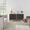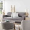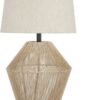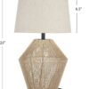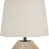 - Lámpara de mesa de yute marrón con pantalla de tambor de lino jaspeado