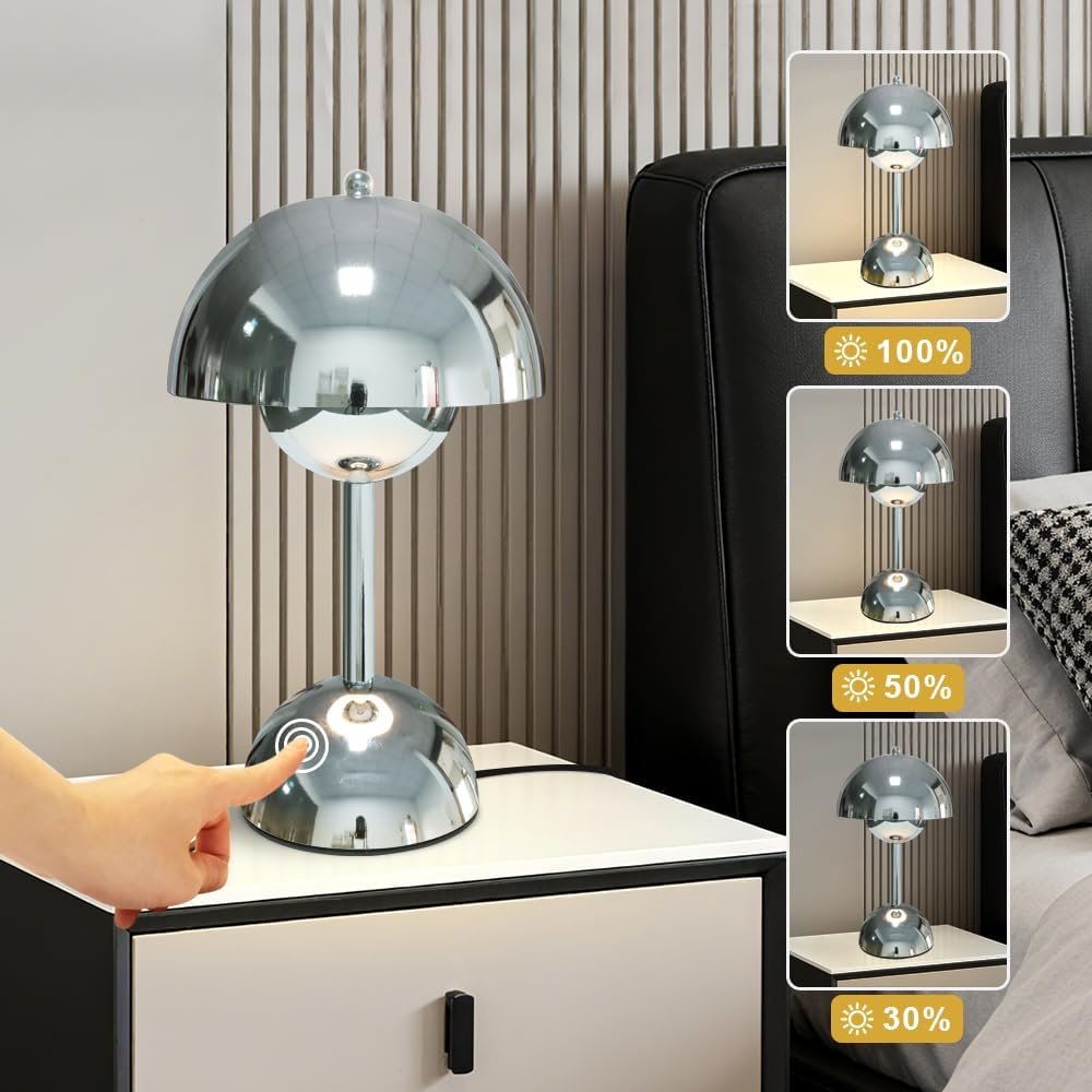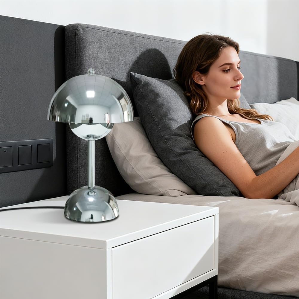 Lámpara de mesa de hongo plateada, lámpara de control táctil