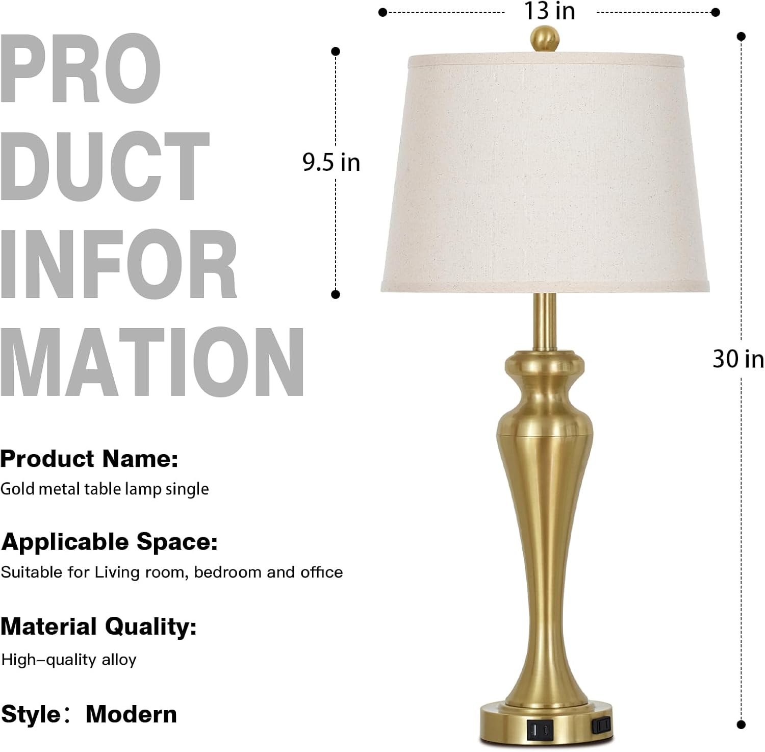 Lámpara de mesa individual dorada de 30 pulgadas, lámparas d
