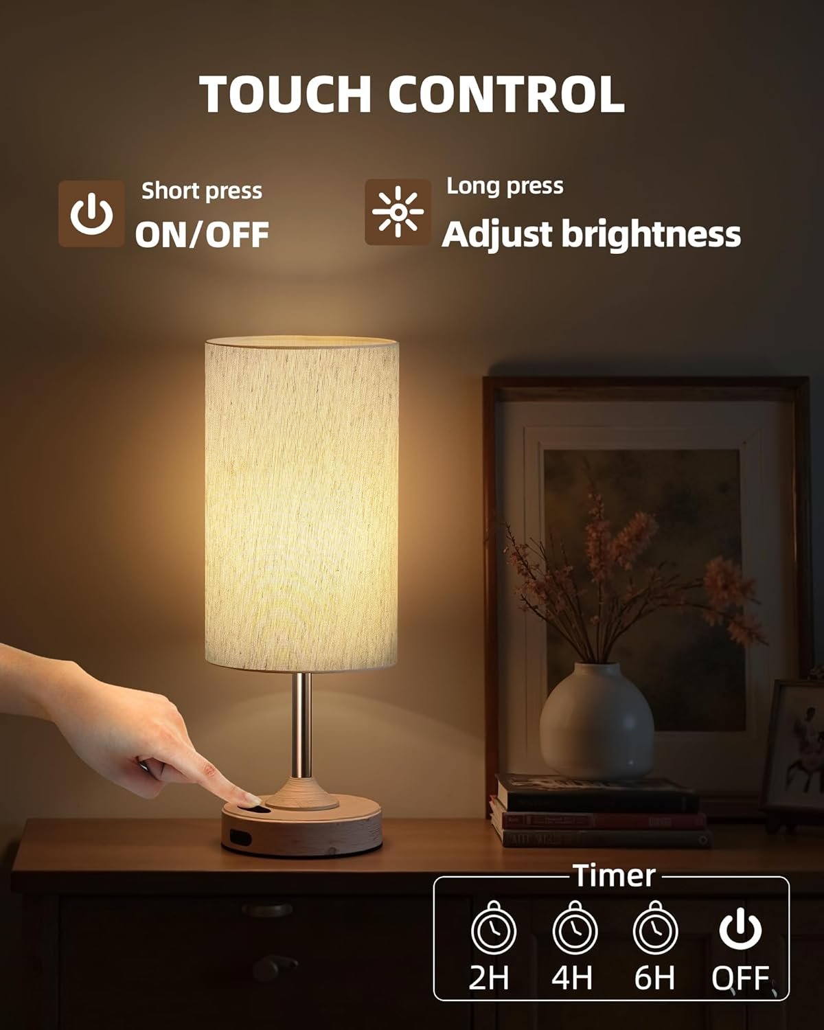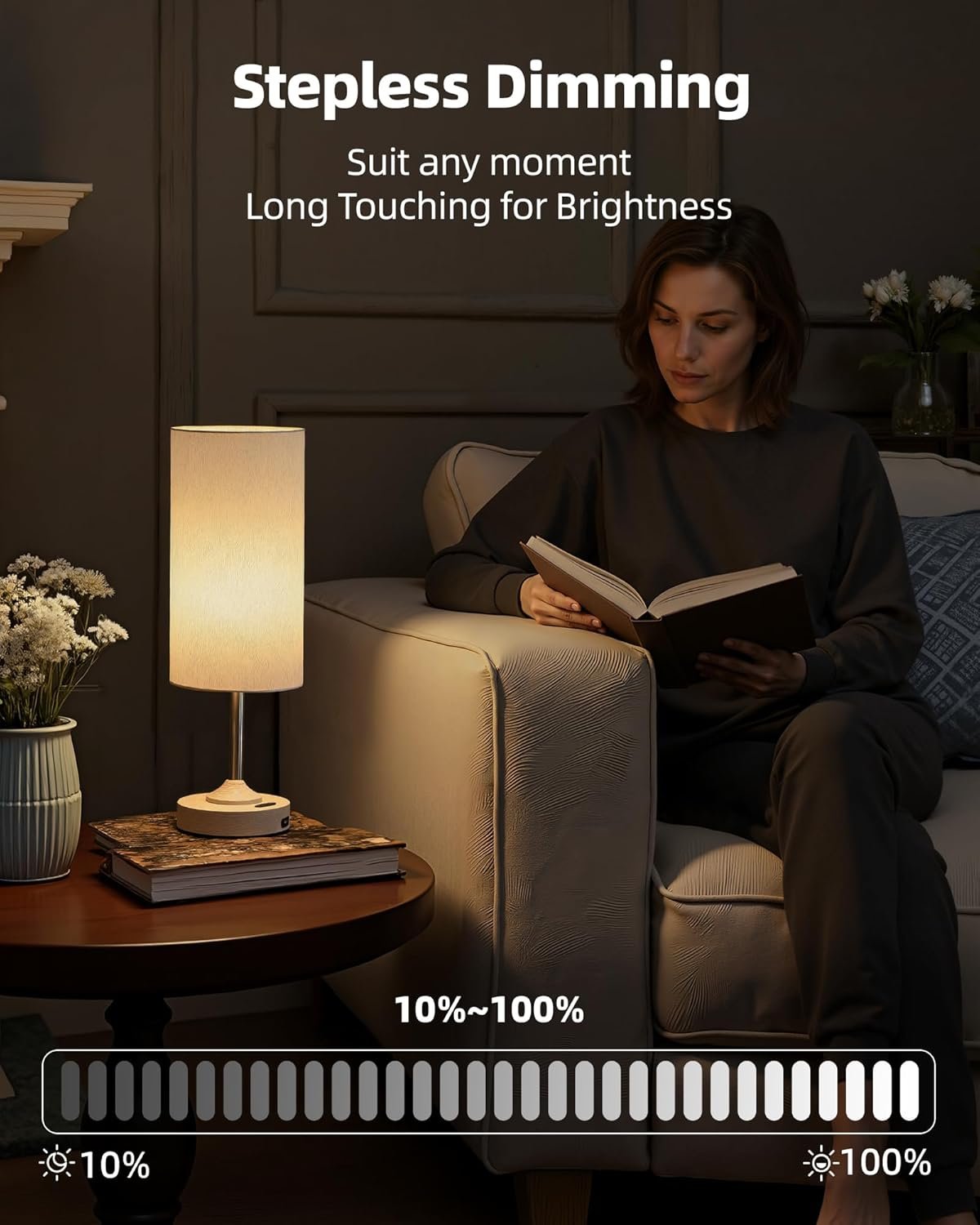 Lámpara de mesita de noche, inalámbrica, regulable, táctil,