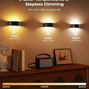 Sensor de movimiento inteligente con 3 modos: las luces con sensor de movimiento FULNIX para interiores cuentan con modos ON, Day y Night. Siempre encendido para iluminación continua, el modo día se activa en cualquier momento con movimiento, y el modo nocturno funciona solo en la oscuridad, ahorrando energía mientras ilumina tu camino con manos libres (Consejo: comprueba el tamaño antes de realizar el pedido) 3 tonos blancos y 15 colores RGB: transforma cualquier espacio con estas luces de pared que funcionan con pilas, ofreciendo 3 tonos blancos (cálido 3000 K, 4000 K natural, frío 6500 K) y 15 colores RGB vibrantes. Con 5 niveles de brillo ajustables, ofrece la iluminación perfecta para dormitorios, pasillos, salas de estar u oficinas, añadiendo comodidad, color y estilo a tu vida cotidiana Batería de larga duración de 5000 mAh: esta luz de escalera recargable funciona con una batería de 5000 mAh. Recarga completamente en 4 a 5 horas con el cable tipo C incluido y disfruta de hasta 60 días en modo de detección de movimiento o 10 horas de iluminación continua con el máximo brillo, no requiere tomas de corriente ni cableado Fácil control remoto y botón: controla sin esfuerzo la luz nocturna con sensor de movimiento de hasta 33 pies de distancia utilizando el control remoto incluido. Establece temporizadores de apagado automático de 30 o 60 minutos, o utiliza el botón manual para un control instantáneo, por lo que es conveniente y fácil de usar en cualquier lugar de tu hogar. (El control remoto requiere 2 pilas AAA, no incluidas) Fácil instalación y diseño moderno: la luz recargable con sensor de movimiento FULNIX para interiores cuenta con un diseño elegante y moderno y es fácil de instalar con adhesivo o tornillos despegables, apto para inquilinos. Perfecto para escaleras, salas de estar, dormitorios, pasillos y cualquier rincón oscuro, proporciona una iluminación práctica y manos libres donde la necesites