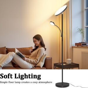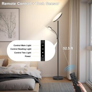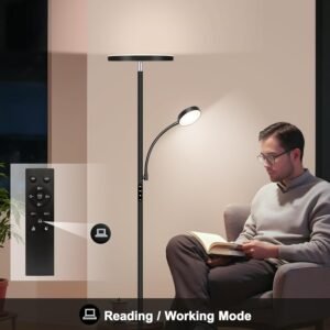 Lámpara de pie LED súper brillante: Esta lámpara de pie brillante viene con una luz principal (gira hasta 350° y se inclina 180° hacia arriba y hacia abajo) y una luz de lectura (se dobla 360°): no produce deslumbramiento y es lo suficientemente brillante para iluminar tu sala de estar. La luz de lectura ajustable te permite inclinarla perfectamente, ya sea que estés leyendo, trabajando o simplemente relajándote. Función de control remoto y táctil: esta lámpara de pie negra tiene un diseño de doble conveniencia con control remoto y táctil. El mando funciona hasta una distancia de hasta 52.5 pies, por lo que puedes ajustar fácilmente la configuración de la lámpara de pie ya sea que estés arriba o abajo. La lámpara de pie Aulaiyi también tiene un práctico diseño magnético: simplemente súmala al poste de la lámpara cuando hayas terminado, para que se guarde convenientemente sin ocupar espacio extra. Lo que es aún más reflexivo es la función de doble control de respaldo: si la batería del mando a distancia se agota, puedes controlar la lámpara de inmediato con el interruptor táctil, lo que hace que el uso diario sea confiable. 4 temperaturas de color y lámpara de pie regulable: Nuestra lámpara de pie cuenta con atenuación continua (5% 100%) y temperaturas de color desde 3000K hasta 6000K. Utiliza el control remoto para cambiar fácilmente entre los modos de lectura/trabajo, relajación y luz nocturna, ideal para todas tus necesidades diarias. Esta lámpara de pie alta funciona perfectamente en dormitorios, salas de estar u oficinas. También tiene una función de memoria que guarda tus últimos ajustes de iluminación para mayor comodidad. Estable y seguro: esta moderna lámpara de pie cuenta con una base ancha y pesada que garantiza una estabilidad confiable para toda la unidad, lo suficientemente resistente como para mantener la lámpara de pie LED en posición vertical en cualquier escenario. La base pesada pasa estrictas pruebas de inclinación, profesional y segura. No hay necesidad de preocuparse por que los niños o mascotas la golpeen. El perfil delgado se desliza fácilmente en rincones estrechos, mientras que su base cabe perfectamente debajo de la mayoría de los sofás, reclinables y sillas de lectura, ahorrándote mucho espacio. Fácil instalación: esta lámpara de pie tipo torchiere es increíblemente simple de configurar, no requiere herramientas, solo aprieta los componentes individuales. Si tienes alguna pregunta, no dudes en ponerte en contacto con nosotros. Estamos comprometidos a resolver cualquier problema, y tu satisfacción es nuestra máxima prioridad.