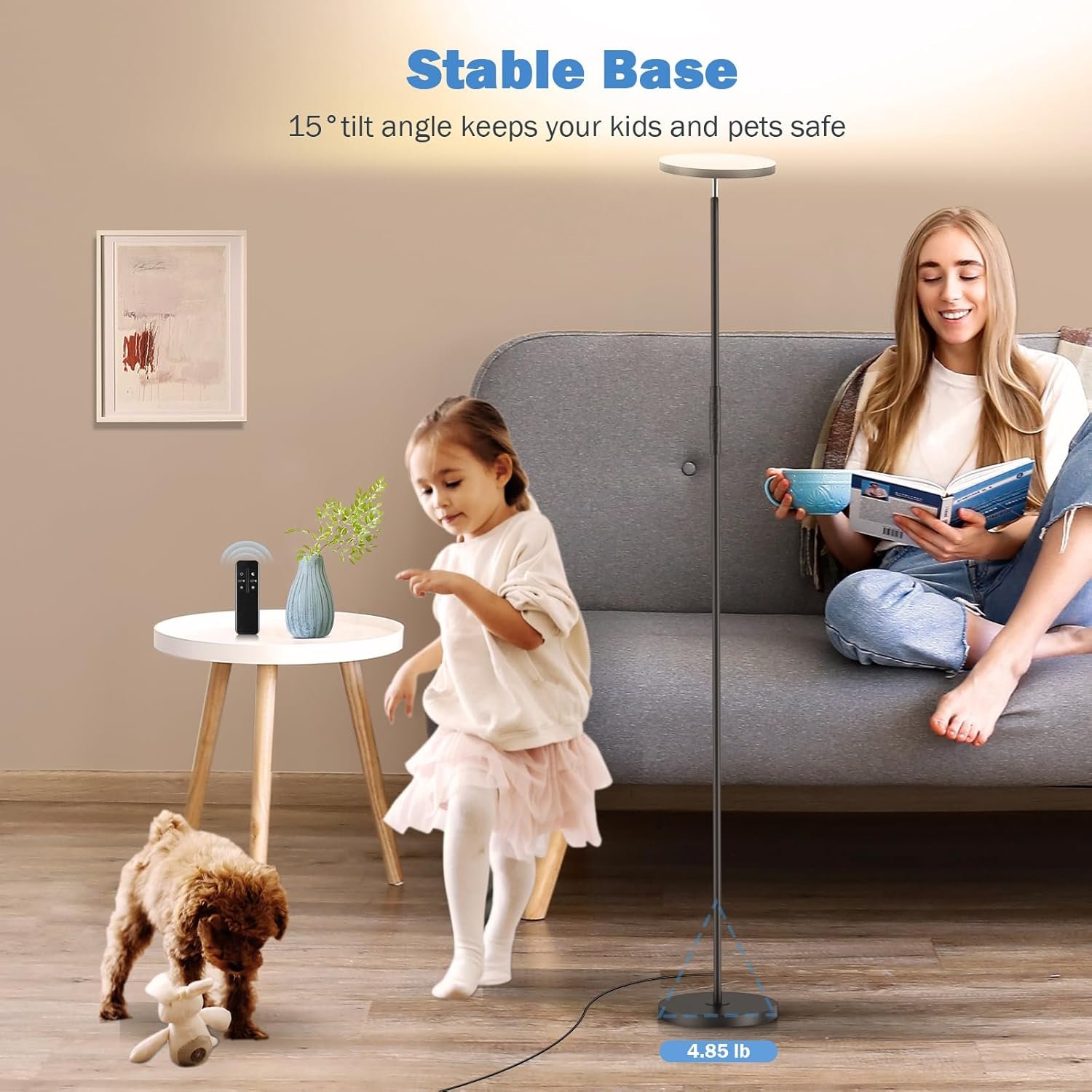 Brillo 30% más brillante : en comparación con las lámparas de pie similares con 128 cuentas de lámpara, nuestras lámparas lo han actualizado a 136 piezas, lo que hace que el brillo de nuestras lámparas de pie LED alcance los 3000 lúmenes, que es casi un 30% más brillante en comparación con las lámparas de pie tipo antorcha con la misma potencia Más temperaturas de color: en comparación con las lámparas de sala de estar con solo 3 temperaturas de color ajustables, hemos actualizado nuestras lámparas de pie regulables a 4: 2700K-4000K-5000K-6500K, y se pueden atenuar continuamente a cualquier temperatura de color, lo que te permite tener más espacio de control Rango de control más amplio : en comparación con esos mandos remotos infrarrojos obsoletos, nuestros controles remotos adoptan una tecnología de RF más avanzada, que elimina la necesidad de alinear intencionalmente la lámpara del cielo, lo que permite una respuesta más rápida y mejora el rango de control remoto de 36 pies a 50 pies Diseño de alambre interior en espiral : en comparación con el diseño tradicional de alambre interior recto, hemos actualizado el cable interior de nuestras lámparas de pie brillantes a un tipo espiral, lo que aumenta la elasticidad de estiramiento y encogimiento, haciendo que el cable interior ya no se enrede cuando se instala, y el suministro de corriente es más seguro y estable durante el uso Inclinación máxima de 15°: la relación de peso del cuerpo de la lámpara (3.1 lbs/3.08 libras) a la base de la lámpara (4.9 lbs/4.85 libras) alcanza 0.64, lo que hace que el centro de gravedad del cuerpo de la lámpara sea mucho más bajo, y en comparación con lámparas de pie similares inclinadas a 7°, el ángulo máximo de inclinación de nuestras lámparas altas alcanza los 15°, que son más estables y más seguros cuando iluminación. La lámpara de pie alta Yikuneng proporciona 36 meses de servicio posventa, nos gustaría ayudarte en cualquier momento