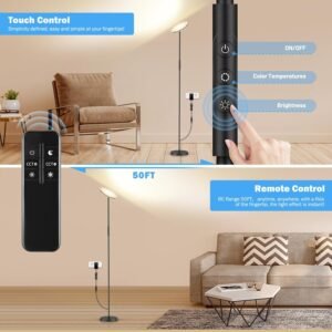 Características especiales: Color ajustable de temperatura, Compatible con enchufe inteligente, Control remoto magnético de 50 pies, Lámpara de pie LED, Regulable