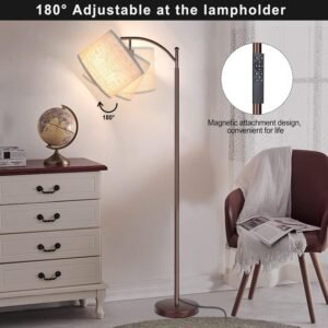 Regulable continuo: el brillo es ajustable de 5% a 100%, la bombilla LED tiene 4 modos de temperatura de color. Las temperaturas de color están disponibles de 3000k a 6000k, las lámparas de pie para la iluminación brillante de la sala de estar no solo proporcionan suficiente brillo, sino que también tienen una función de cuidado ocular mientras lee o trabaja. Control remoto e interruptor de pie MANERAS DE INTERRUPTOR DUAL: Interruptor giratorio para encender/apagar la luz y cambiar el color de la luz; control remoto para encender/apagar, cambiar el modo de color y ajustar el brillo. La práctica función de ajuste de temporizador de 1 hora hace que tu bebé se sienta cómodo y se duerma fácilmente. Soporte de lámpara ajustable: esta lámpara de pie vertical con soporte de lámpara giratorio se puede girar hasta 180° máximo, por lo que puedes guiar la luz al ángulo y lugares deseados para crear una esquina cómoda y bien iluminada de tu hogar. Retro y elegante: diseño simple y líneas elegantes realzan un aspecto retro y elegante, un ajuste perfecto para sala de estar, dormitorio, estudio, habitación de invitados, habitación infantil, etc. Larga duración y ahorro de energía: incluye una bombilla LED inteligente regulable de bajo consumo. No se quema ni se sobrecalienta, comprar esta lámpara también significa ahorrar dinero y energía.