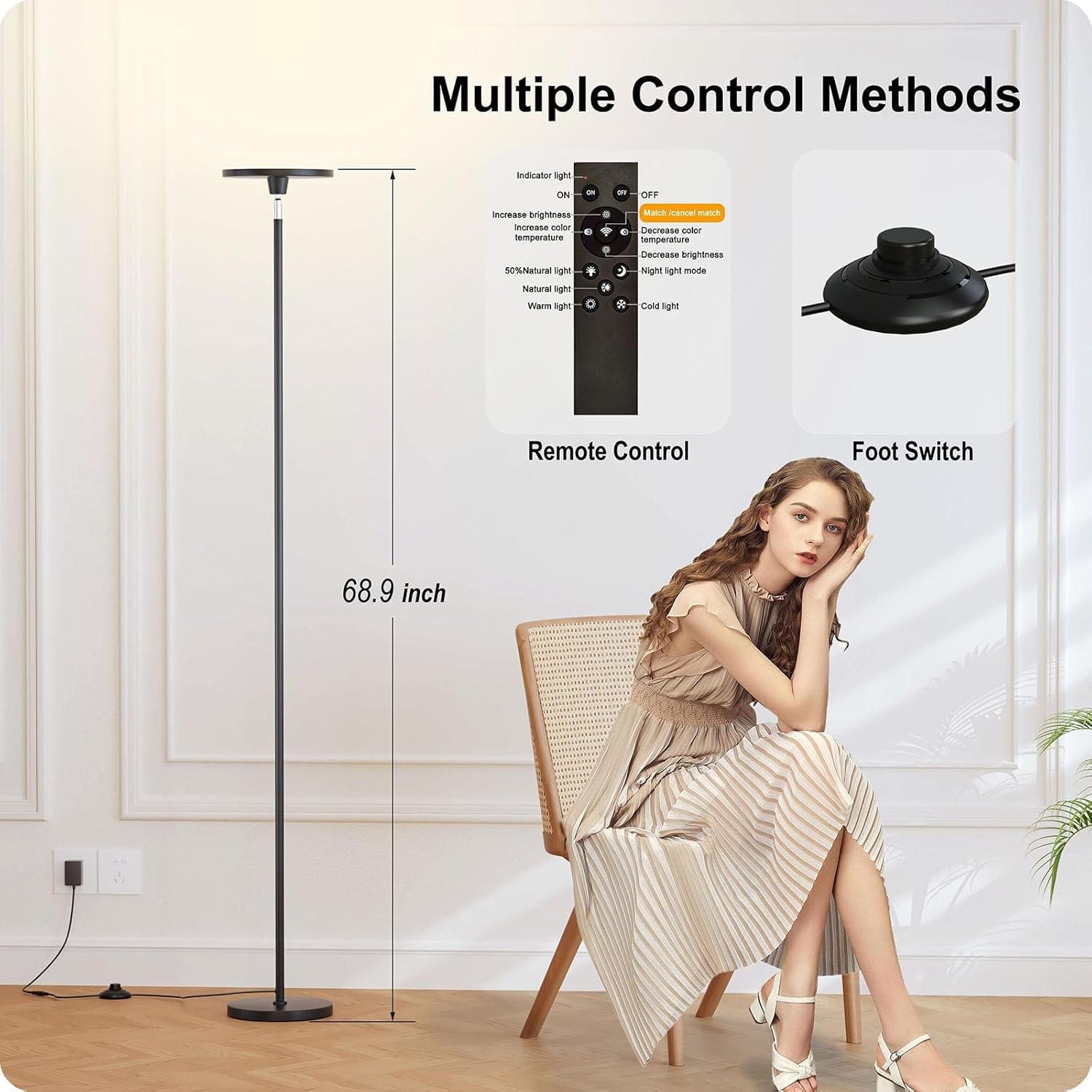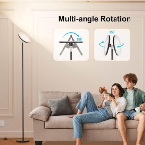 Lámpara de pie led regulable brillante: Esta lámpara de pie utiliza tecnología de iluminación led avanzada, el led tiene una larga vida útil y características de ahorro de energía, el uso correcto del led tiene una vida útil de hasta 30,000 horas, puede ahorrar mucho dinero. Brillo y temperatura de color ajustables: con el control remoto, puede ajustar fácilmente el brillo (10%-100%) y la temperatura de color (3000k colores cálidos – 6000k colores fríos) de las lámparas de pie para personalizar la luz que desee. También hay 5 botones de modo de iluminación, convenientes y prácticos. Esta lámpara de pie con control remoto es perfecta para lámpara de esquina, lámpara de sala de estar, lámparas para dormitorio o lámpara de oficina. También tiene una función de memoria que puede recordar los últimos ajustes de iluminación. Control remoto y control de interruptor de pie: Con el control remoto, puedes controlar fácilmente la lámpara de pie moderna en cualquier lugar de tu hogar dentro de 10 metros, especialmente en invierno, puedes controlar fácilmente la lámpara de pie del dormitorio sin salir de la cama caliente. Además, también puedes tocar el interruptor de pie para encender y apagar la lámpara de pie, especialmente cuando sostienes algo en la mano, este interruptor de pie puede ayudarte fácilmente. Ángulo de luz ajustable: la parte del cabezal de la lámpara se puede ajustar 350 grados horizontalmente y 180 grados verticalmente, puede ajustar fácilmente el ángulo de luz de la lámpara de pie alta de acuerdo con sus necesidades para mejorar el brillo de un lugar en su hogar. Fácil instalación: esta lámpara de piso es muy fácil de instalar sin necesidad de herramientas de instalación, simplemente apriete los componentes individuales. Si tienes alguna pregunta, no dudes en ponerte en contacto con nosotros, sin duda resolveremos cualquier problema que tengas, tu satisfacción es nuestra mayor responsabilidad.